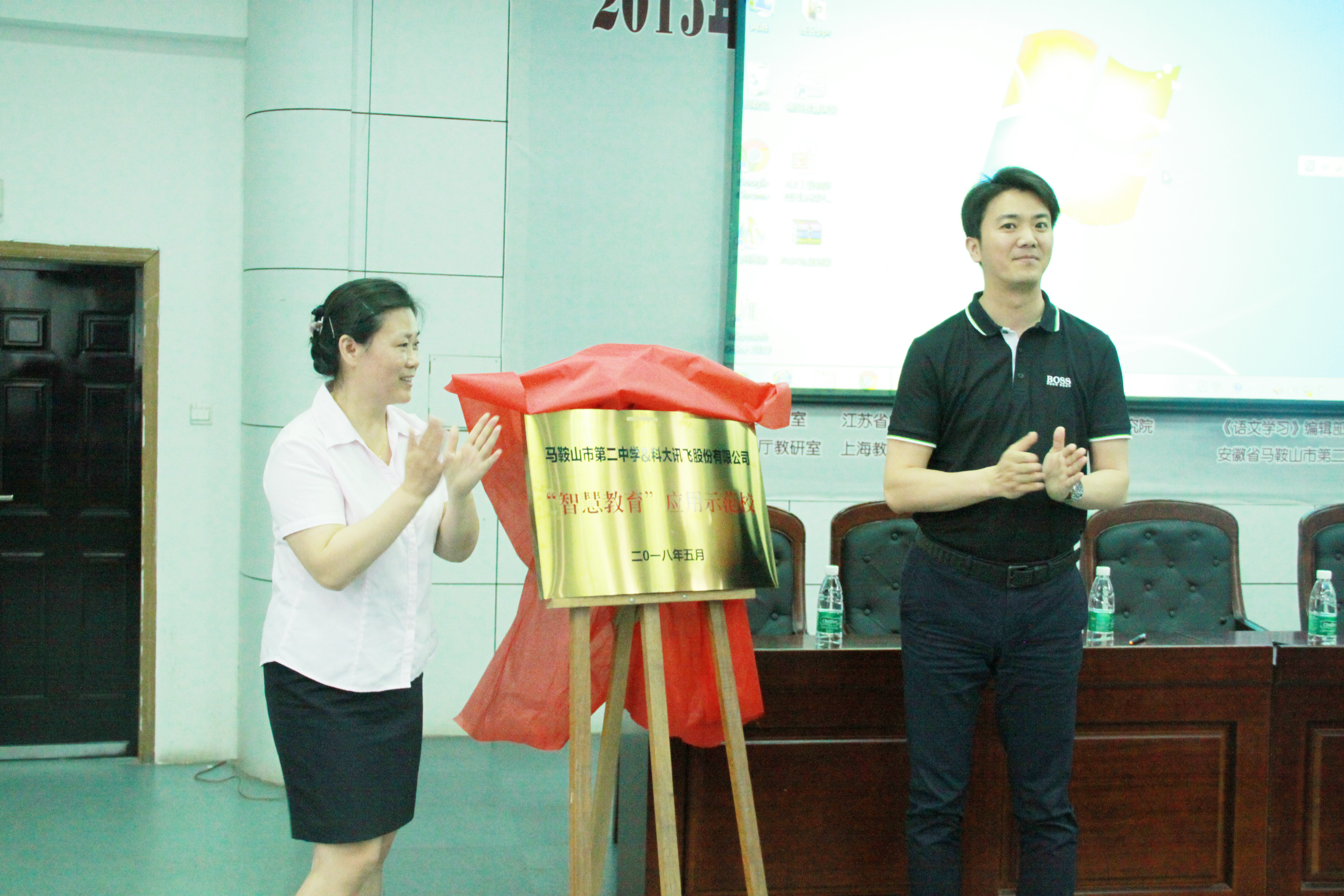 簽約儀式上,馬鞍山二中副校長王玉平與科大訊飛皖東南(nán)大區總經理孟慶勇代表雙方簽約了智慧教育應(yīng)用示範(fàn)校合作框架協議,並(bìng)舉行了揭牌儀式。未(wèi)來,雙方將本(běn)著“立足課堂、科學(xué)超前、友好合作、優勢互補、協同研究、共(gòng)同(tóng)發展”的原則,不斷推進馬(mǎ)鞍山二中的信息化建設,將其打造成全國範圍內智慧教(jiāo)育應用的領航學校。
