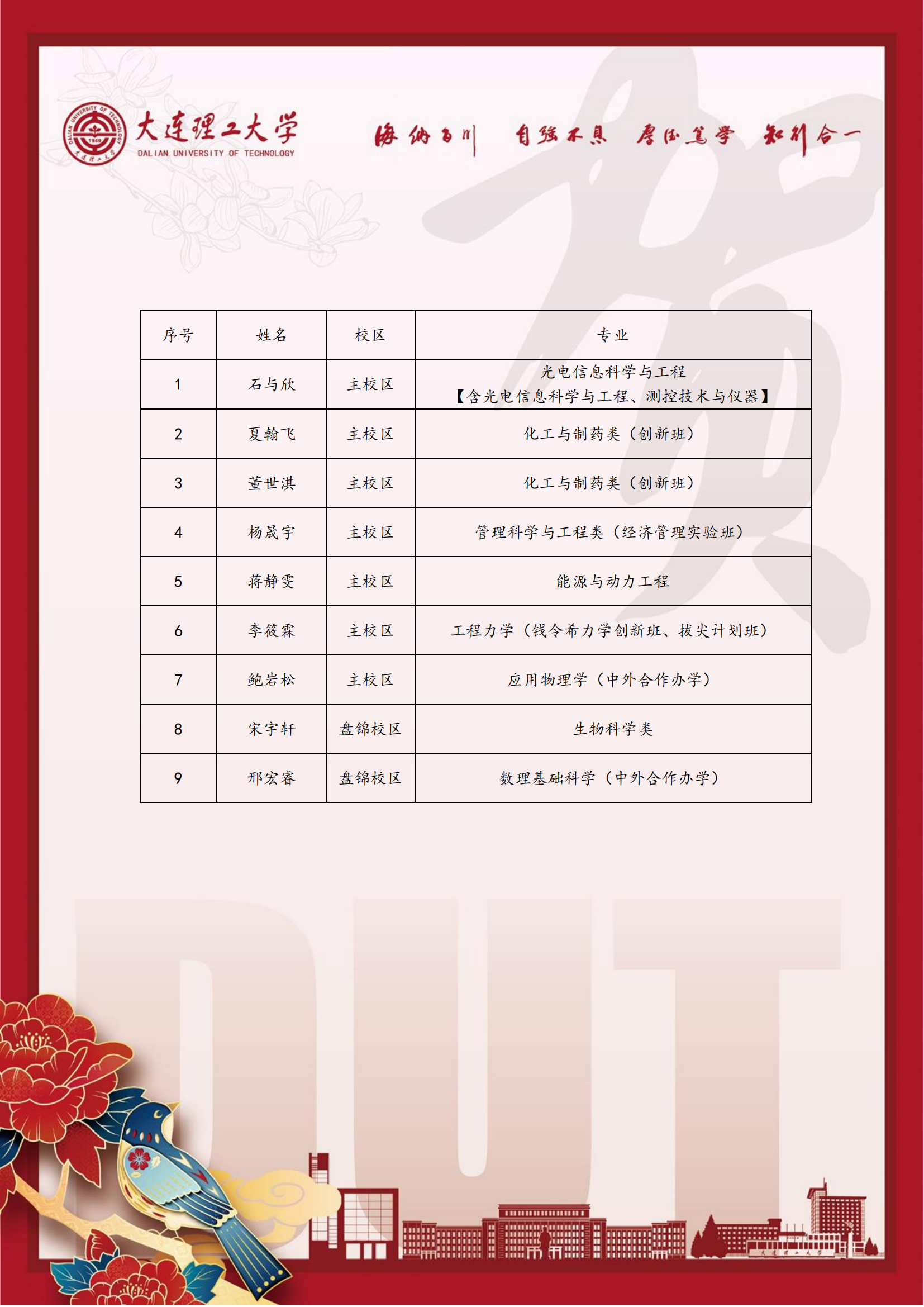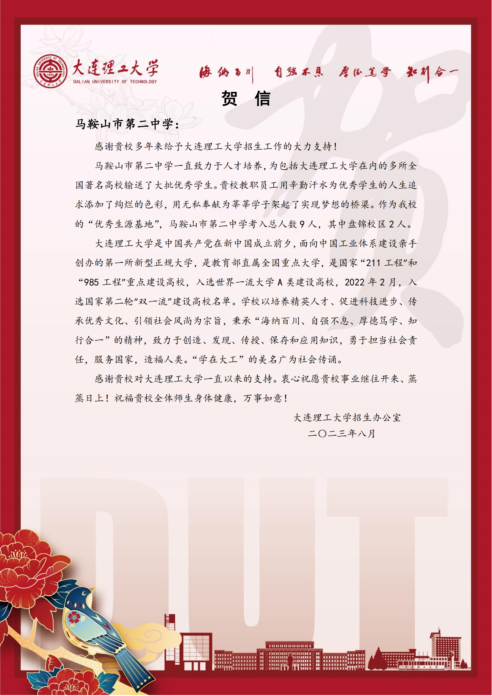 大連理工大學發來賀信