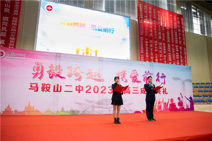 2023年(nián)3月18日上(shàng)午10點,馬鞍山二(èr)中隆重舉行“勇毅跨越 攜愛前行”2023屆學生成人典禮。馬(mǎ)鞍山二中(zhōng)黨委全體成員、高三年級全體師(shī)生和家長齊聚一堂,共同(tóng)見證這個充滿儀式感、感動與激情的時刻(kè)。