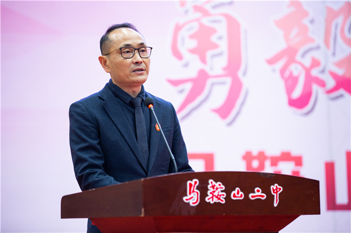 馬鞍山二中(zhōng)副校長(zhǎng)慶曉致辭。他首先祝賀學生們順利邁入人生(shēng)新階段,並叮囑他們在未來的人(rén)生道路要常思感恩、向陽而生,要自律向學(xué)、追求卓越,要胸懷家國、擔當大任。他勉勵全體高三學子(zǐ),為了昨日的汗水和明日的理(lǐ)想,用(yòng)自己的雙肩擔起責任,向著詩和(hé)遠方,揚(yáng)帆起航。
