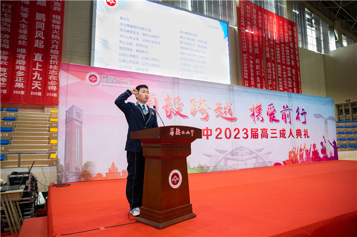 汗水澆築希望,拚搏成就輝煌,在高三(3)班(bān)黃灼同學的帶(dài)領下,全體同學進行(háng)成人宣誓。擲地有聲的誓言,表達了同學們對未來的承諾(nuò)和決心,更(gèng)加明確自己的人生責任與義務,提醒自己在未(wèi)來的道路上時刻謹記使(shǐ)命,勇(yǒng)毅跨越,攜愛前行。