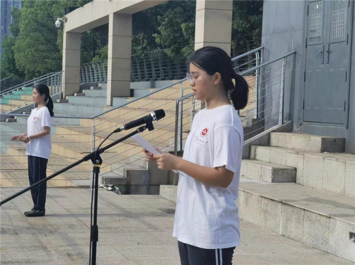 力爭優秀,敢為人先。高一(yī)(2)班韓(hán)旭鵬同學作為領誓人帶領參訓學員(yuán)鄭重起誓,高一(4)班陳紫涵同學作為學生代表作了《請黨放(fàng)心,強國有我(wǒ)》為題(tí)的發言。