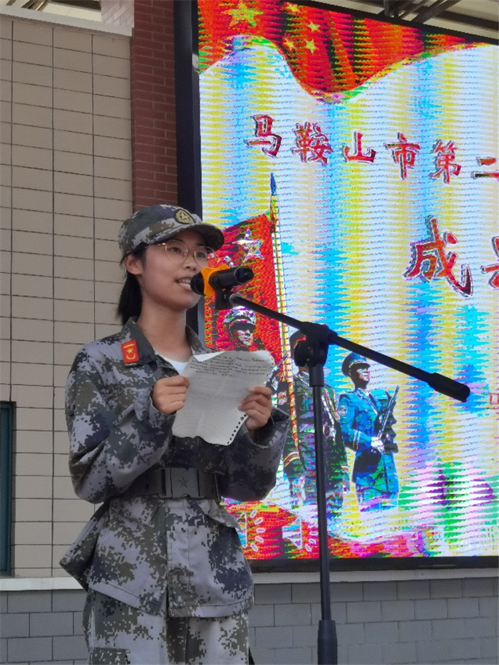 不負期許,敢為人先。112班王亞捷同學作為學員代表作《勇敢向前 揚帆起(qǐ)航》發言。馬鞍山二中慶(qìng)曉副校長則從鍛煉體魄、塑造意(yì)誌、團隊精神三個方麵高度評價了二(èr)中學子(zǐ)此次軍訓的意義與收獲。馬鞍山市教育局汪(wāng)久生調研員對軍(jun1)訓學員表示了親切慰問,同時(shí)對高(gāo)一新生提出(chū)了期待與展望。