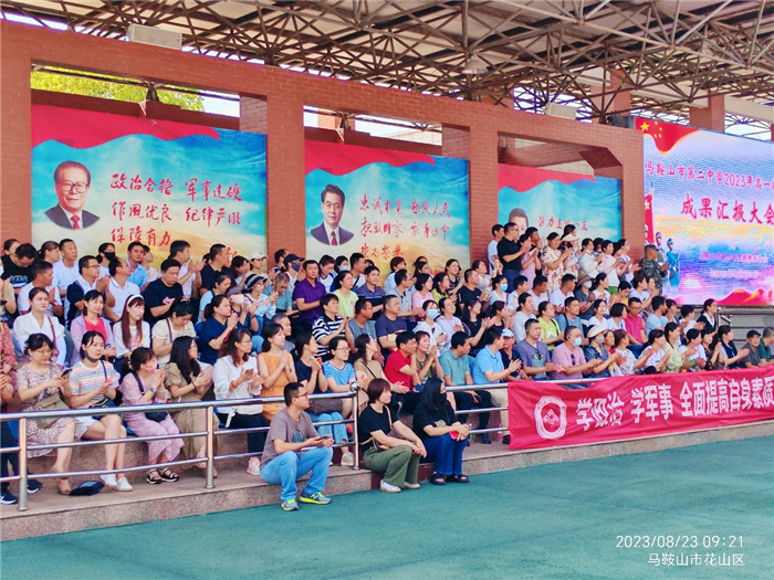 8月23日上午,馬鞍山市第二中學2023級高一新生(shēng)軍訓成果匯報大會暨軍訓閉營(yíng)儀式(shì)在馬鞍(ān)山市青少年實踐教育中心舉行(háng)。馬鞍山市第二中學高一年級1011名參訓(xùn)學員、317位家長(zhǎng)代表及全體輔導員等參加大會。馬鞍山市教(jiāo)育局二級調研員汪久生、馬鞍(ān)山市第二中學副校長慶曉等出席大會。