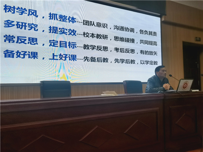 高一年級部孫誌農主(zhǔ)任對期中教學(xué)作階段性總結。他從教學常規、集體(tǐ)備課、校本教(jiāo)研、薄弱學生、奧賽集訓等方麵整體分析了(le)現階段高一(yī)年級的學科建設概況,就晨讀、薄弱學生等方麵表明年級部日常巡查發現的(de)部分問題,並強調了學(xué)習習慣培養與(yǔ)學習基礎(chǔ)鞏固的(de)重要性。
