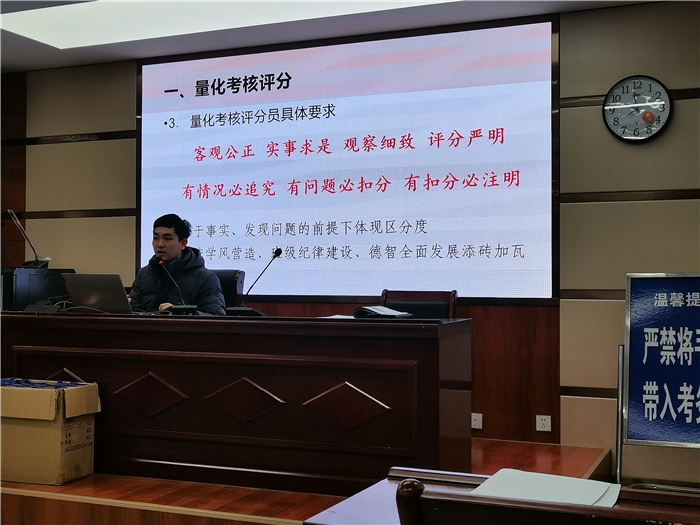 孫誌(zhì)農(nóng)主任對會議作總結講話。他指出,發現問題是解決問題的起點,而各位量化考核評分員都是問題(tí)的發現者,因而評分員工作至關重要。隻有認真客觀、科學嚴(yán)謹、充分全麵的評分結果才能與年級部管理、班主任管理(lǐ)形成強大合力,從而助力學校管理、班級建設、個人發展。
