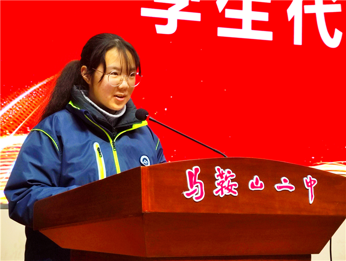 高116班汪(wāng)悅同學作為學(xué)生代表作匯報發言。