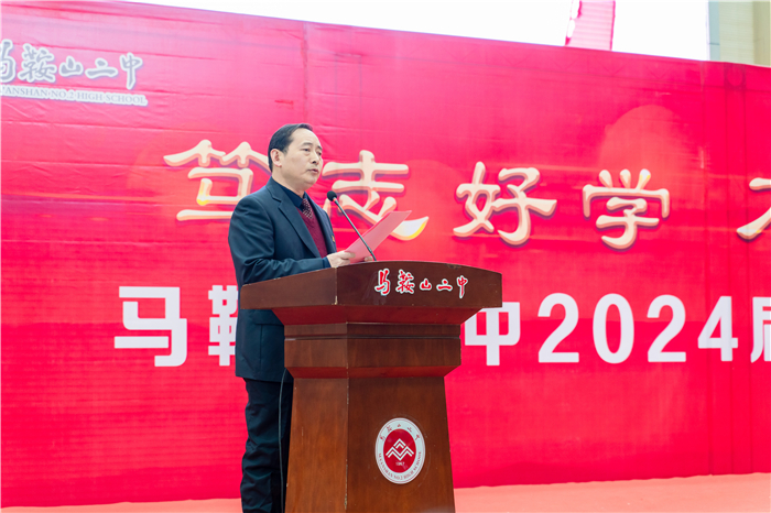馬鞍(ān)山二中褚亞飛(fēi)副校長致辭。他首先祝賀學生順利邁入人生新的階段,並叮囑他們在未來的(de)道路上要常懷感恩之心,擔當起相(xiàng)應的責任,既要仰望星空(kōng),又要腳(jiǎo)踏實地,努力成長為能夠擔當民族複興大(dà)任的時代新人。