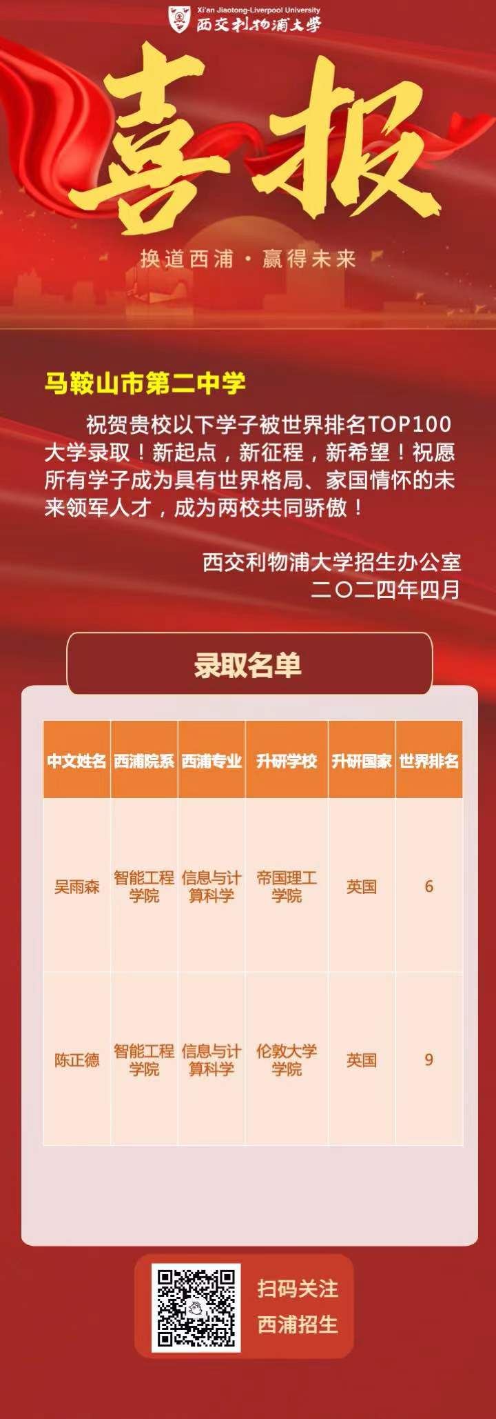 西交利物浦大學發來喜報