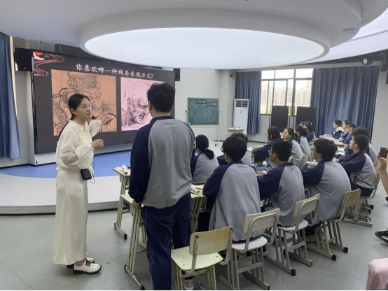 2024年(nián)5月17日上午第二節課我校美術組吳萌老師為全市的中小學美術老師帶來了一節精彩的匯報課。我校教科處沈榮主任參與聽課,吳萌老師帶來的《中國白描——線條的意蘊》一課是由她設計的特色校本(běn)課程。課堂上(shàng)吳老師帶領學生了解吳道子作品(pǐn)魅力,以及理解中國人的自(zì)然美學觀(guān),體會線條的意蘊,呼籲(yù)更多的同(tóng)學關注傳統文化,拓寬自己的美術視(shì)野。最後同學們現場臨摹(mó)了中國傳統白描作(zuò)品,切身體會到中國傳(chuán)統白描作(zuò)品的藝術(shù)魅力。本課注重(chóng)對學生美術表現能力的培養,落實美(měi)術學科素養。