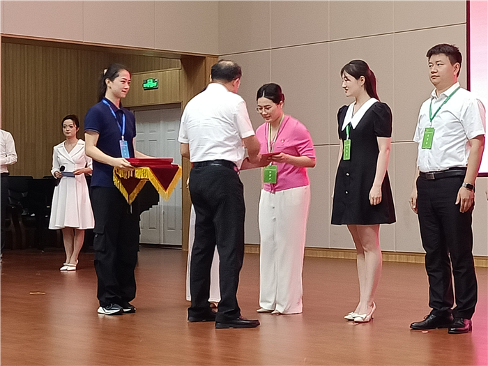 劉靜文老(lǎo)師(shī)(左二)作為(wéi)特等獎獲(huò)獎選手代表上台領獎