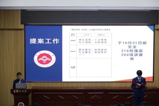 為進(jìn)一步加強學生(shēng)的民主意識,提(tí)升自我管理、自我教育(yù)和自我服務的能力,馬鞍山二中第二十九屆學生代表大會於10月15日下午在報告(gào)廳成功舉行。本(běn)次大會由學生會主席團成員胡睿遠同學主持(chí),馬鞍山二中副校長金加林出席(xí)會議,第二十九屆學生(shēng)會幹部、第十二(èr)屆學生(shēng)校長助(zhù)理,以及高一、高二年級的學生代表參會。