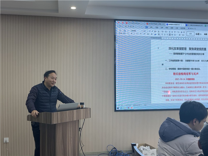 市(shì)教育局副局長沈申福親(qīn)臨指導,帶來了一場高屋建瓴、發人深省(shěng)的精彩專題報告。他緊密圍繞 “基(jī)於七中治校(xiào)管理” 這一核(hé)心(xīn),對學校管理模式的探索進行了深度剖析與分享(xiǎng)。