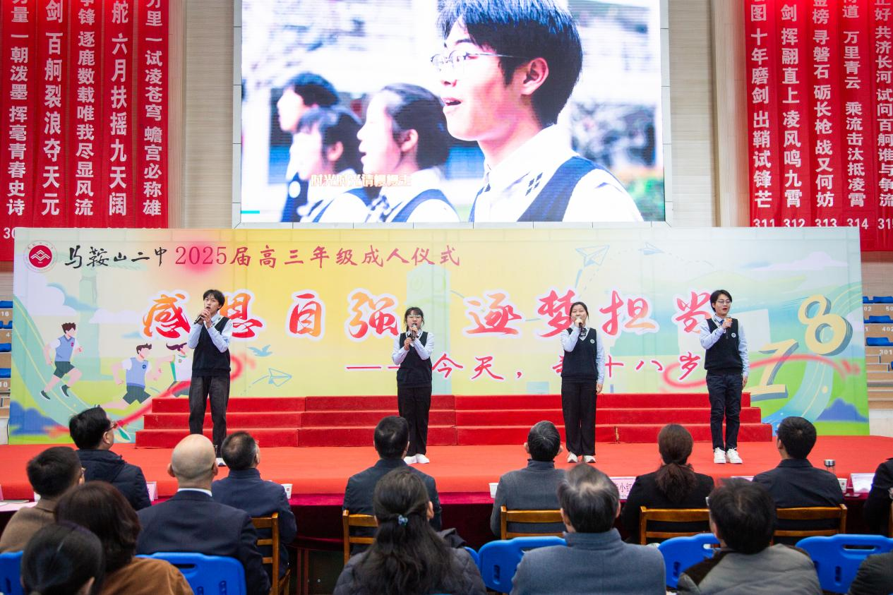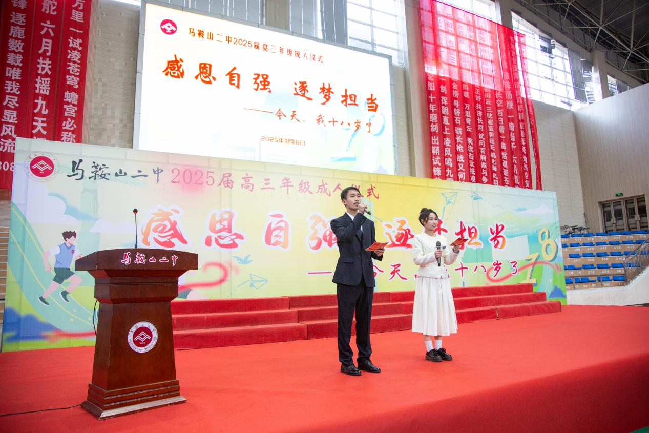 三月的春風輕輕拂過雛鷹雕像,十八(bā)歲的鍾聲在(zài)校園上空(kōng)悠揚回蕩。3月18日上午,我校2025屆全體高三學子身著(zhe)整齊的正裝,在學校領導(dǎo)、全體高三年級(jí)教師和家長的見證下,舉行了一場隆重的成人儀式,祝福2025屆高三學子(zǐ)正(zhèng)式邁向青春新階段。儀式(shì)以“感恩自強(qiáng) 逐夢擔當”為主題,以四大篇章奏(zòu)響(xiǎng)了新時代二中(zhōng)學子的成長交響,高三年級何壽雲老師、308班於凡迪同學擔任(rèn)主持。