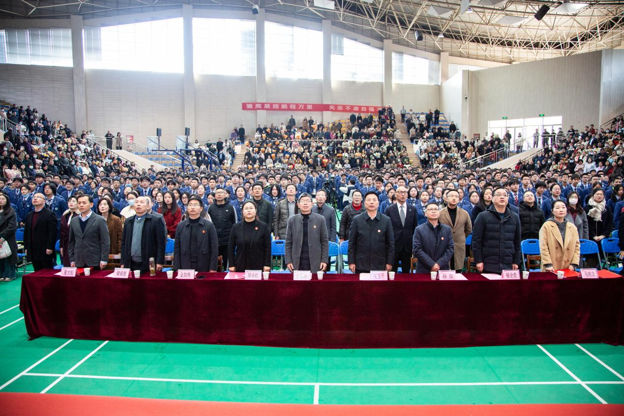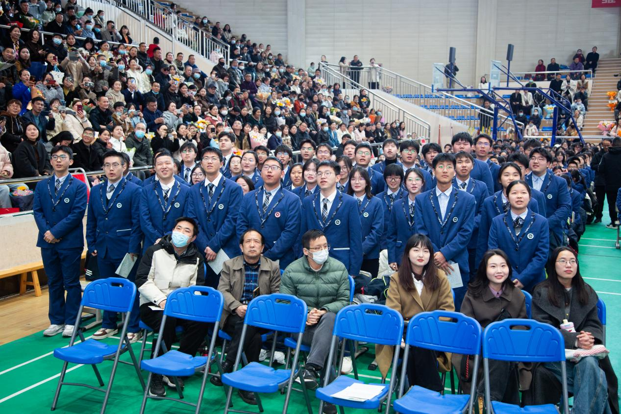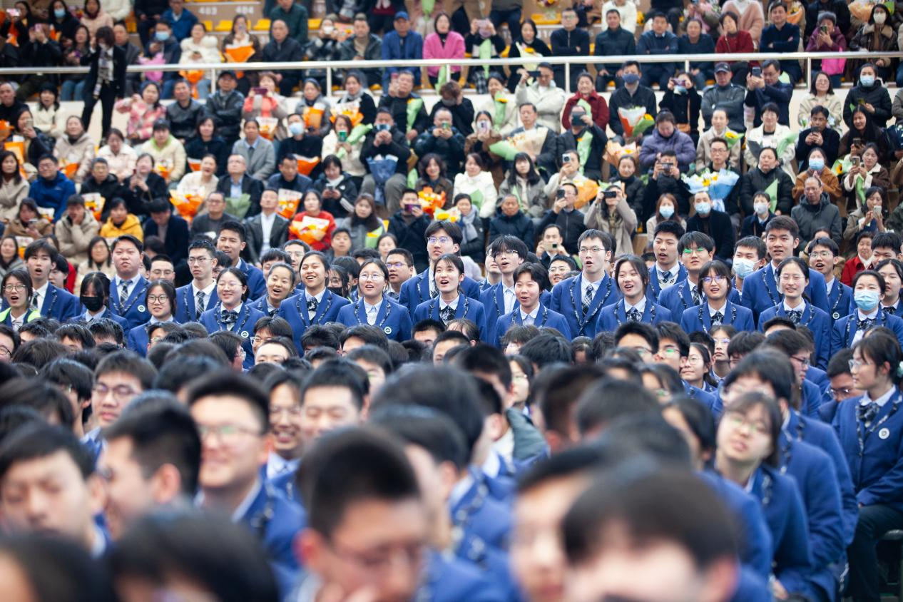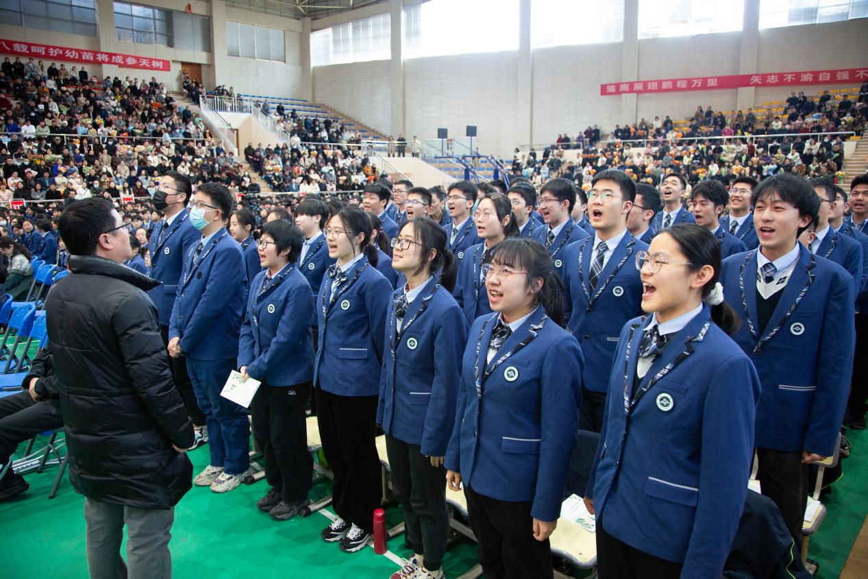 來自北大、清華等頂尖學府校友(yǒu)的寄(jì)語如春風化雨(yǔ),充滿鼓勵(lì)與期望,為正處於衝刺階段(duàn)的高三學子(zǐ)注入強大精神(shén)動力。學(xué)校領導贈送(sòng)的《憲法》,既是法治(zhì)精神的傳承,更是責任擔當的彰顯。當校(xiào)歌《校園的(de)雛鷹》旋律響起,“厚德 勵學 敦行”的(de)校訓在春日暖陽中熠熠生輝(huī)。