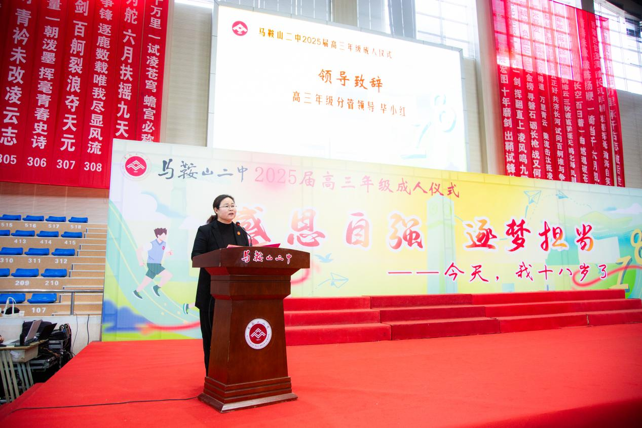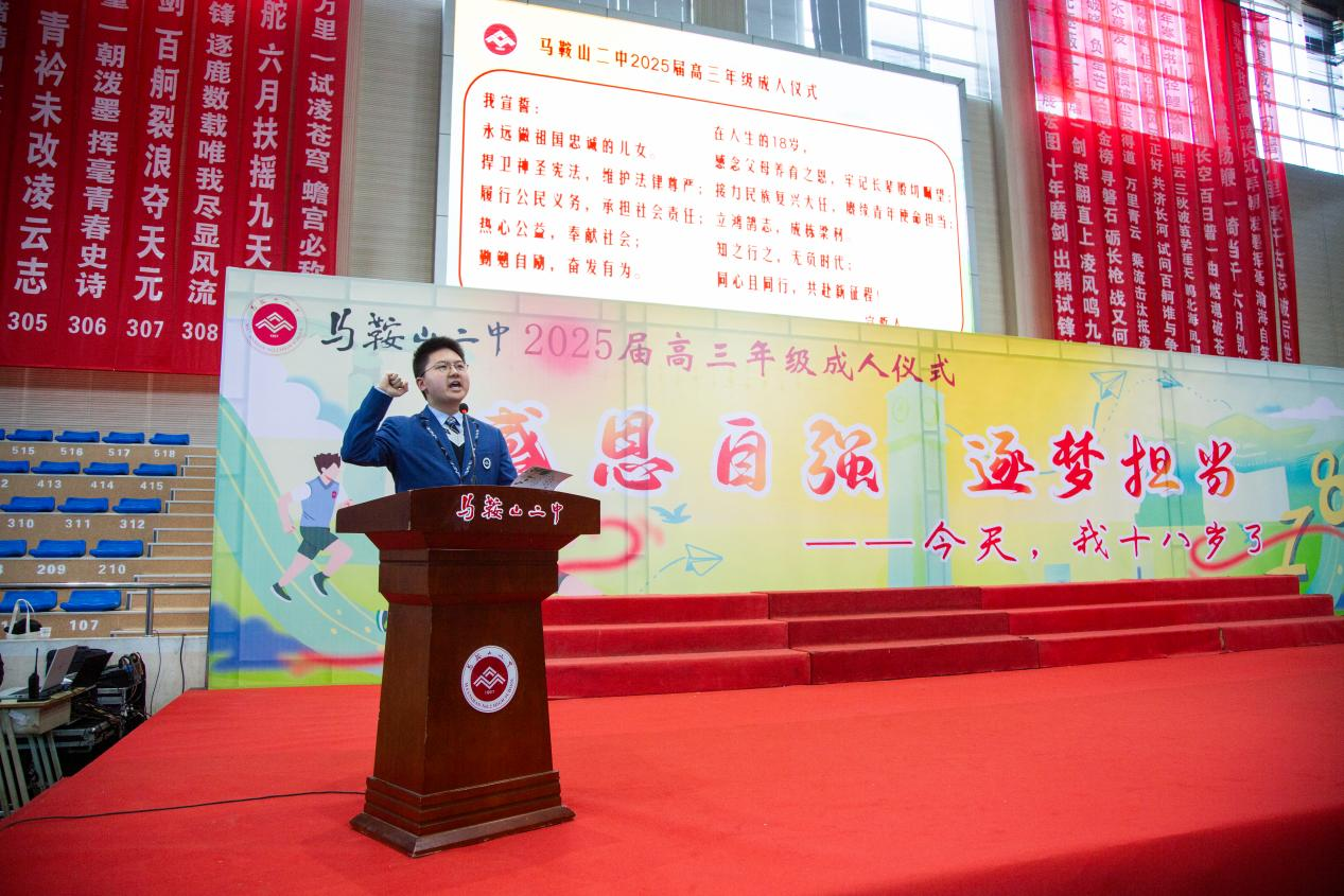 體育館內(nèi)火紅的勵誌條幅,映照著一張(zhāng)張青春洋溢的麵龐。成人儀式在嘹亮的(de)國歌(gē)聲(shēng)中拉開序幕,高三年級分(fèn)管領導畢小紅老師(shī)祝福學子們行穩致遠(yuǎn),高考加油;313班孫培雯同(tóng)學作為學生代表(biǎo)擲(zhì)地有聲地發(fā)表了青春感(gǎn)言,體育(yù)館內雷鳴般的掌聲此起彼伏,共同為這場破繭成蝶的蛻(tuì)變喝彩。