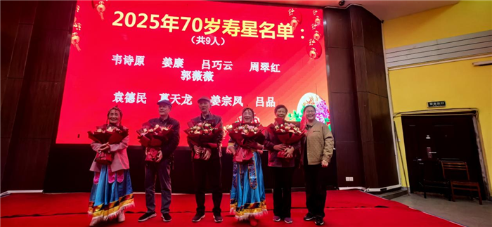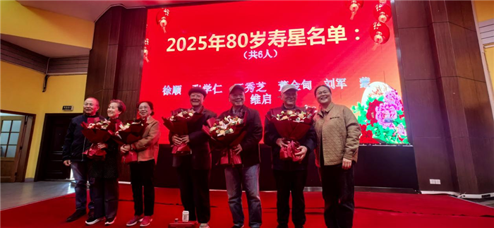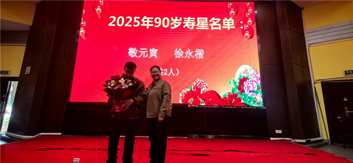 校黨委委員、工會主席畢小紅(hóng)宣布(bù)了本次活動的 17 位壽(shòu)星名單,其中70歲壽星(xīng)9人(rén)、80歲壽星6人、90歲壽星2人,青年教師和校工會(huì)主席為到場的11位(wèi)壽星獻上鮮(xiān)花與壽禮,全場響起熱烈掌聲,真摯祝福老教(jiāo)師們福壽安康。