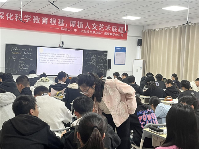 計珂老師的“Li Bai and his romantic poetry”拓展閱讀課,立足(zú)高一國際班學生的詩詞積累,以李白浪(làng)漫主義詩歌(gē)為載體,通(tōng)過海報創作、詩歌(gē)推(tuī)薦等任務,讓學生在英語語言環境中深入理解傳統文(wén)化。同時,計老師還將課前布置的資(zī)料搜集任務與課堂展示相結(jié)合,充分(fèn)調動了學生(shēng)的參與熱情。