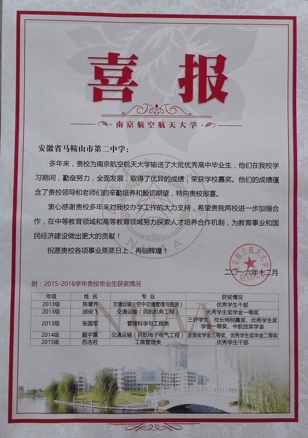您現在的位置:首頁 - 新聞中心 - 校園新聞(wén) - 南京航空航(háng)天大學喜報