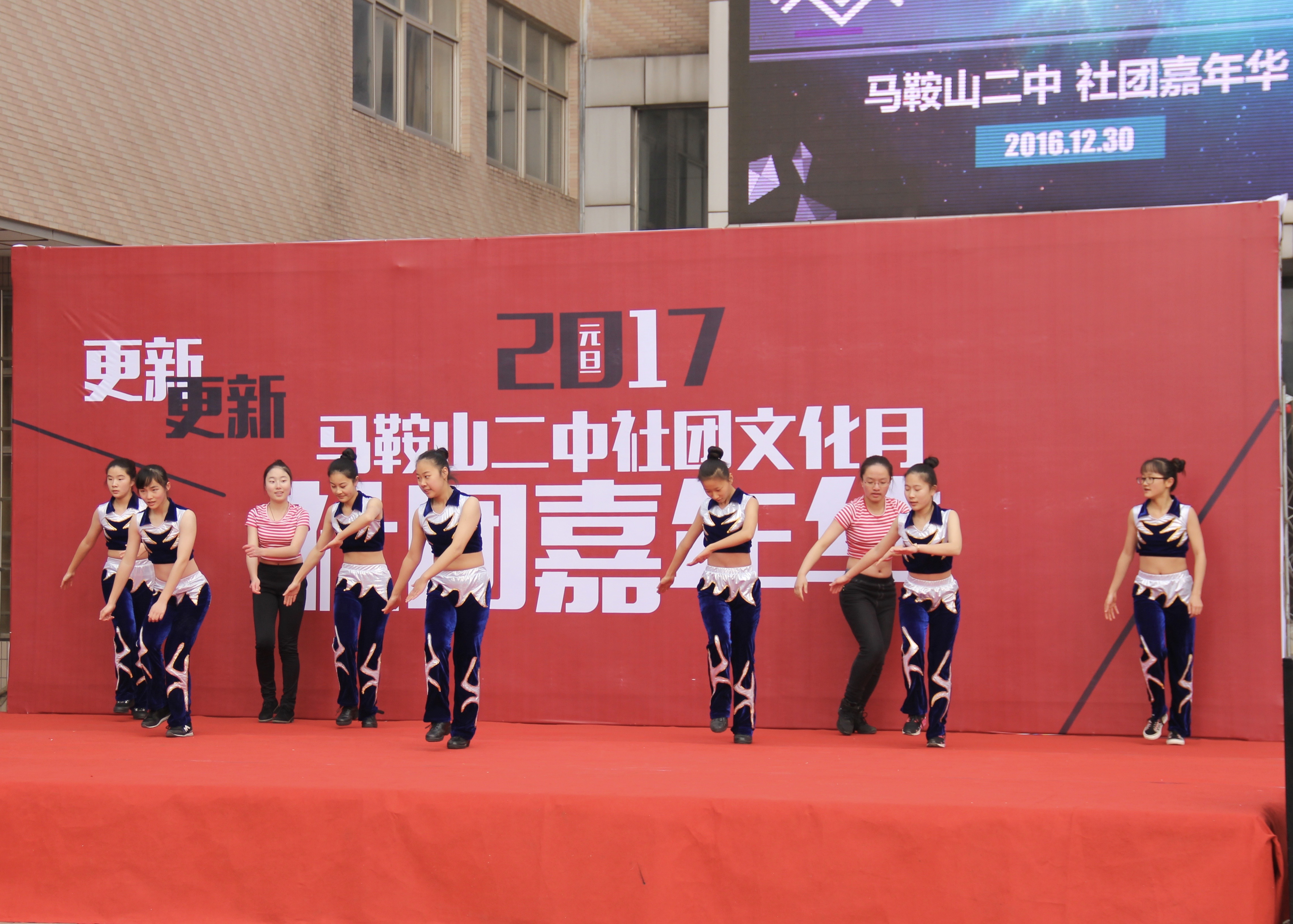 2016年12月30日上午,馬鞍山二中在校園內舉辦了社團嘉年華活動。活動形式新穎、內容豐富,並且全部由學生自(zì)發組織(zhī)。此(cǐ)次活動充分展現了(le)二中學子多方麵的才能(néng)、積極健康的審美趣味和昂揚向(xiàng)上的精(jīng)神麵貌。學校領導和老師放下(xià)平日的嚴肅,與(yǔ)弟子開懷同樂,用心(xīn)做好他們成長中的(de)見證者(zhě)、參與者、守護者。
