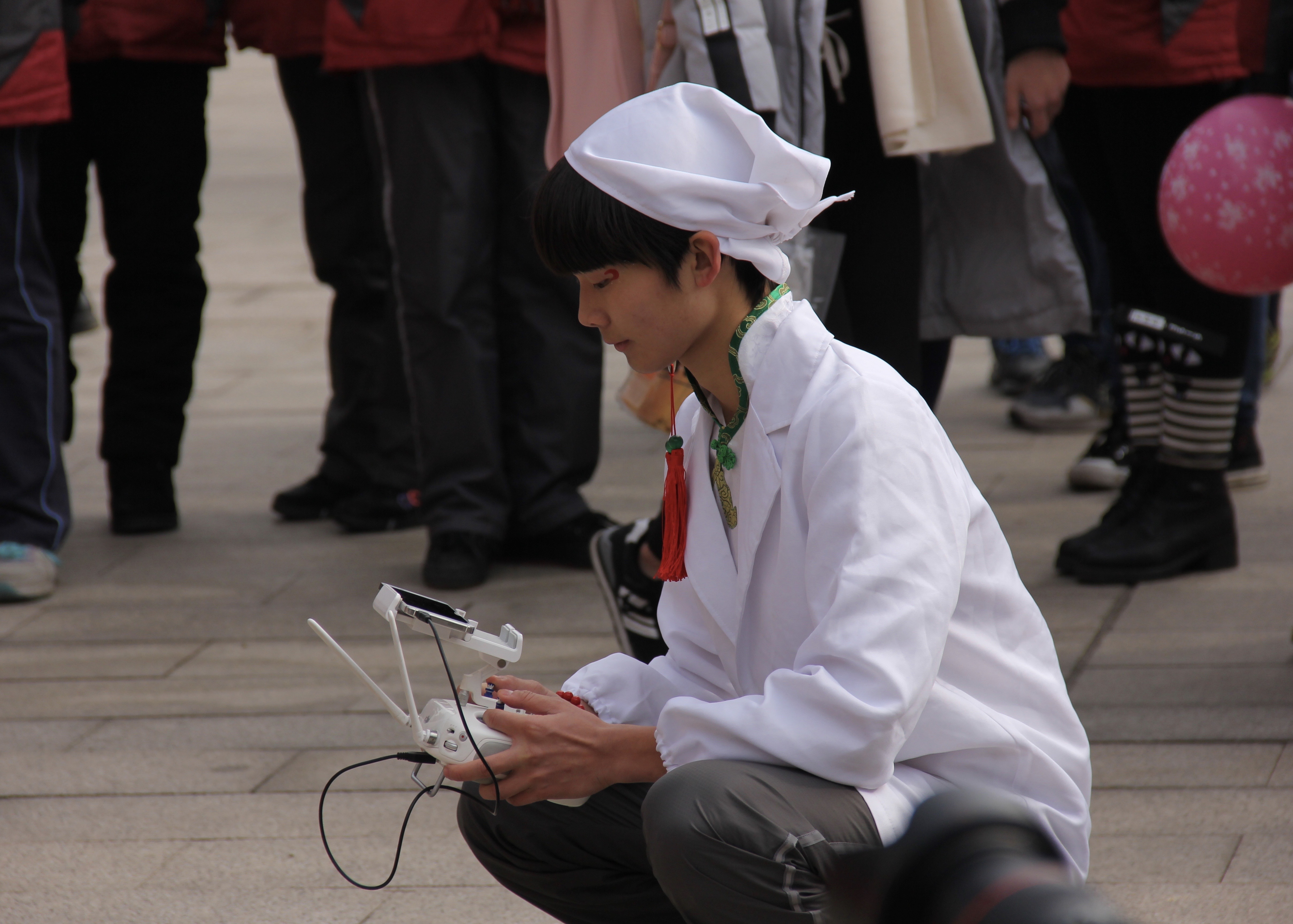 放飛無人機的白衣少年