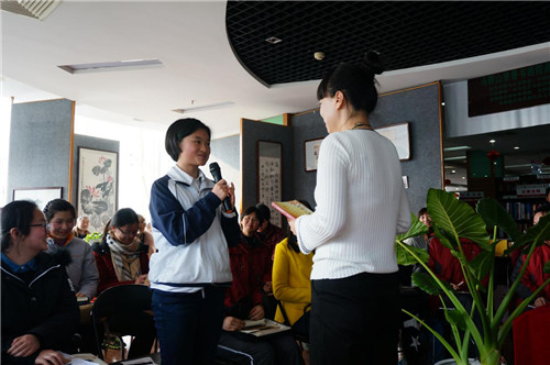 2月19日下(xià)午,我校高一(3)班同學於新華書(shū)店“讀者天地”參加了由市婦聯與新華書(shū)店舉辦的“幸(xìng)福(fú)女性,悅讀人生——古典詩詞專(zhuān)場”活動。