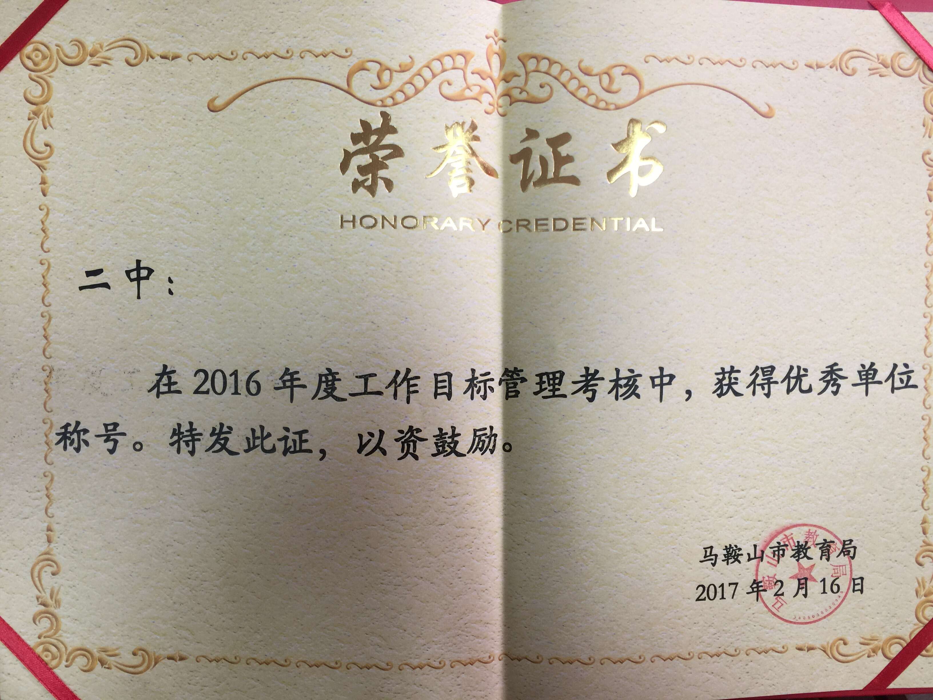 本次會議傳達了2017年全省教育工作會議精神,印發了《市教育局2017年工作要點》,並為2016年度目(mù)標考核中獲獎的縣(區)教育局、直屬學校、民辦(bàn)中學(xué)頒獎。我(wǒ)校憑借紮實有效的工作(zuò)作風和豐碩的辦學(xué)成果在本次(cì)考核中(zhōng)榮獲優秀單位稱(chēng)號。