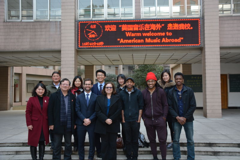 2月27日下午4:30, 在市(shì)外辦的組織下(xià),美(měi)領館的(de)領導和(hé)工作人(rén)員帶(dài)領“美國音樂在海外”樂隊來我校(xiào)進行文化交(jiāo)流。二中郭惠宇(yǔ)校長出席活動並(bìng)發言。國際(jì)處陳天才(cái)主任、王(wáng)家偉老師、音樂組陳馨和辛聞老師負責陪同。