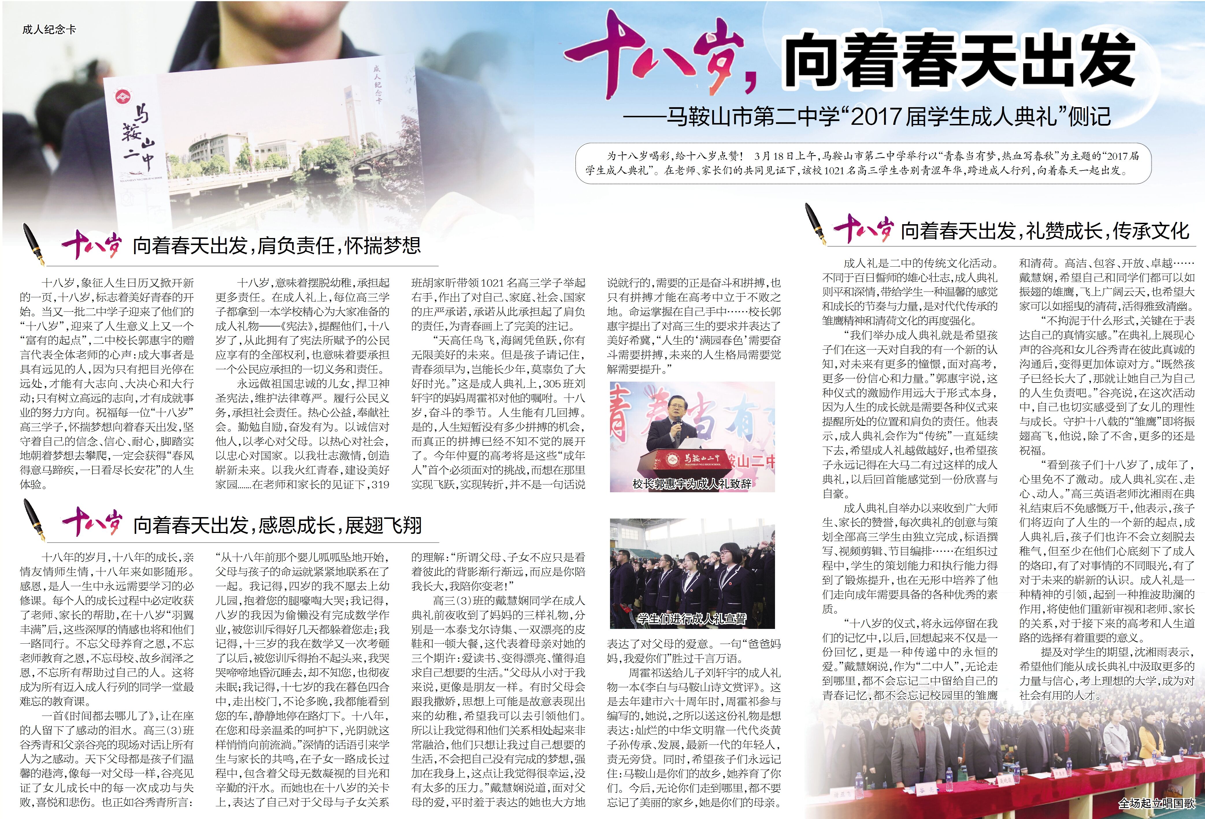 《馬鞍山日報》3月(yuè)20日第八版《十八歲,向著(zhe)春天出發》