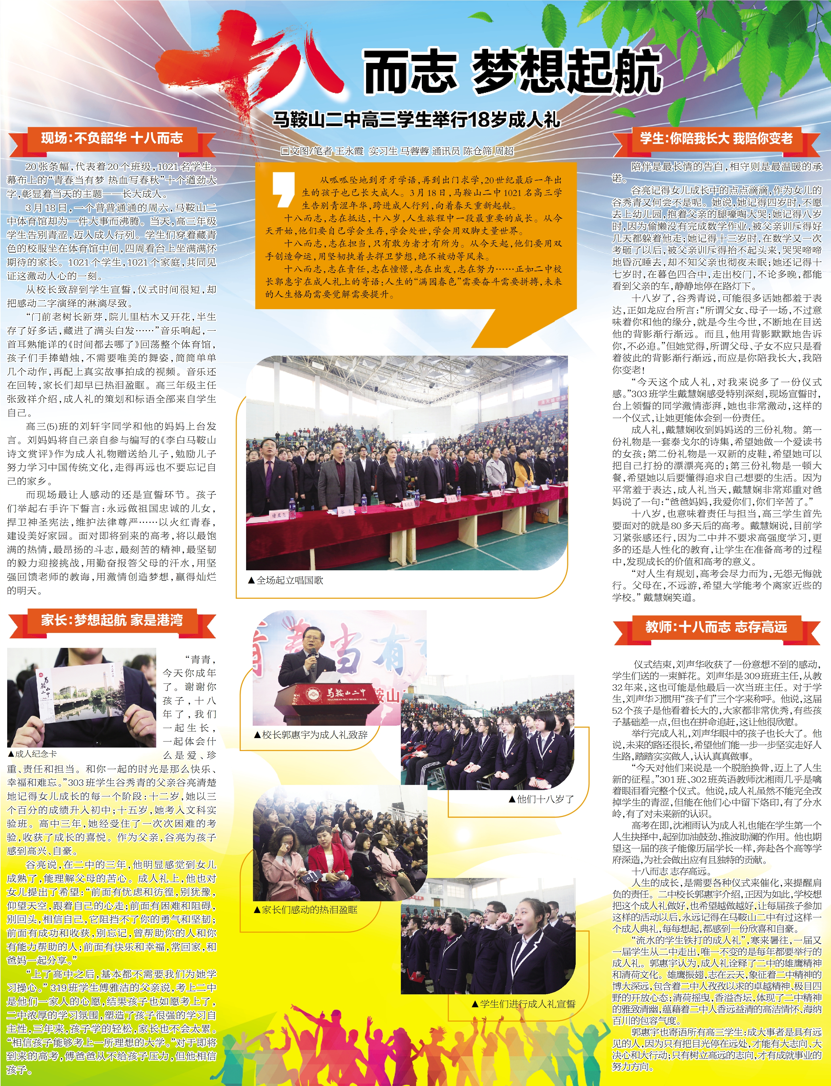 《皖江晚報》3月(yuè)20日第二版《十八而誌,夢想起航(háng)》
