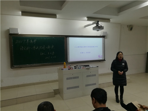 為進(jìn)一步加強高三語文複習工作的針對性(xìng)、科學性、實效(xiào)性,3月(yuè)23日下午,我校高三(sān)年級語文(wén)備課組在(zài)階梯教室201開展教研活動,一同研讀2017年版語文學科考試大綱說明(míng)。高三語文組(zǔ)備(bèi)課組組長關元芳老師主講,高三全體語文老師和部分高(gāo)一高二年級(jí)的語文老師參加了此(cǐ)次活動。