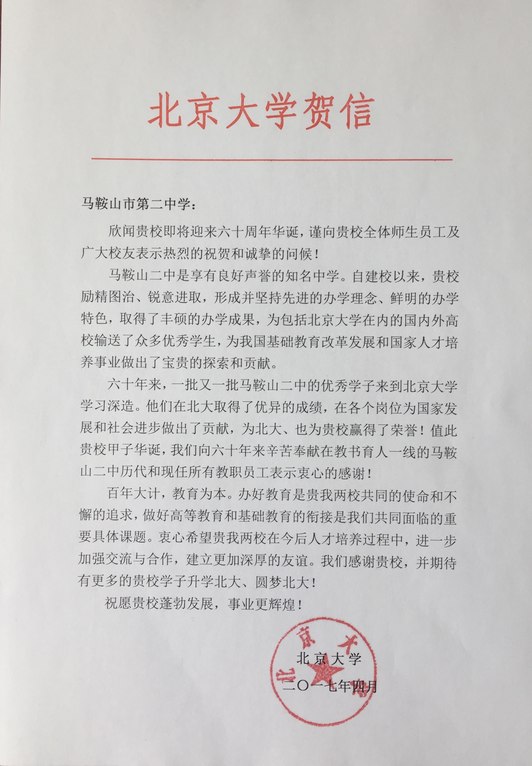 【60周年校(xiào)慶】北京大學賀信