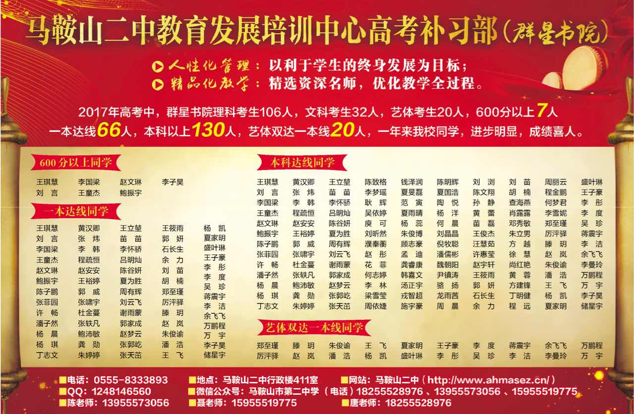馬鞍(ān)山二中補習部高考喜報