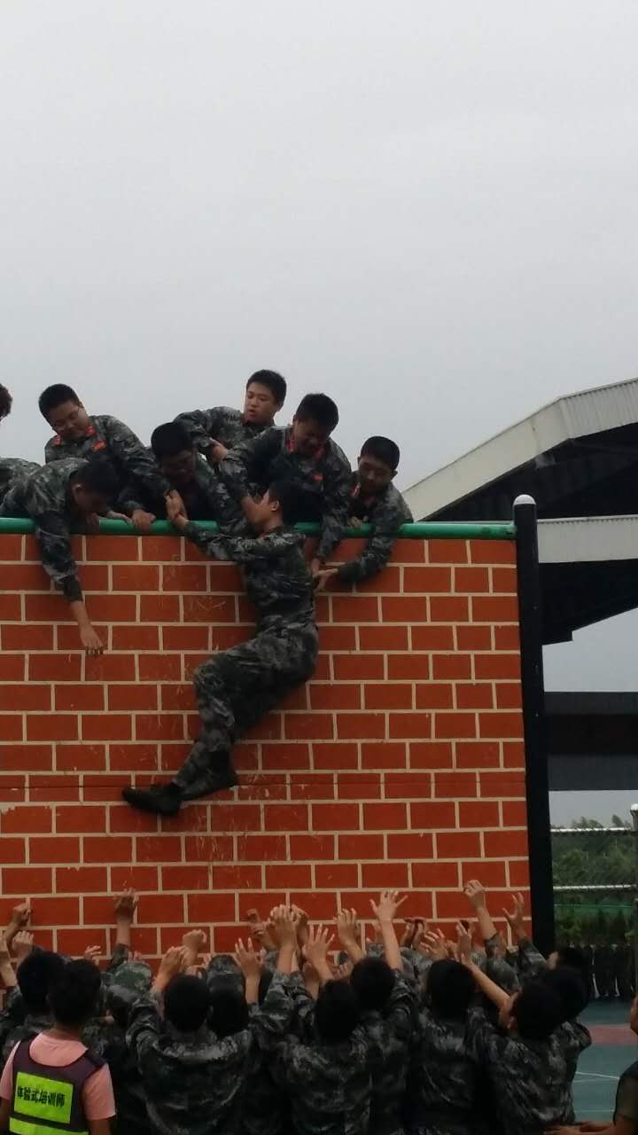 營員們穿著一身正氣的軍裝(zhuāng),昂首挺胸,踏著整齊的步(bù)伐(fá)。是什麽(me)讓同學們興高采烈(liè),鬥誌(zhì)昂揚?原來是(shì)大家(jiā)要去生動有趣的(de)拓展訓練(liàn)了。懷著好奇心,91视频网站端坐在訓練場的場地上,訓練(liàn)開(kāi)始了,為了鼓舞士氣,91视频网站創意地給自己隊取了個名字“戰狼隊”!在一上午的課(kè)目中,最使91视频网站難忘(wàng)的是“絕壁牆”,6米高的牆,有(yǒu)10個“保護者”站在牆下,將(jiāng)挑戰者推上牆頭,之後牆(qiáng)上的三個“保護者”將“挑戰者”抱上牆上的護欄(lán)裏。一開始,91视频网站都忐忑(tè)不安,心裏像(xiàng)揣了兩隻兔子,擔心這麽高的圍牆怎麽能爬(pá)上去。可是(shì)91视频网站鼓起勇氣(qì), “保護者“蹲起了馬步,扛起了(le)”挑戰者“。瞧,哪一個”保護者“臉(liǎn)上不是布滿(mǎn)了(le)汗珠?可91视频网站沒有一點退縮的意思,團結就是力量,當91视频网站所有”挑戰者“全部挑戰勝利時,所(suǒ)有人都(dōu)歡(huān)呼起來,91视频网站永遠不會忘記這一刻!