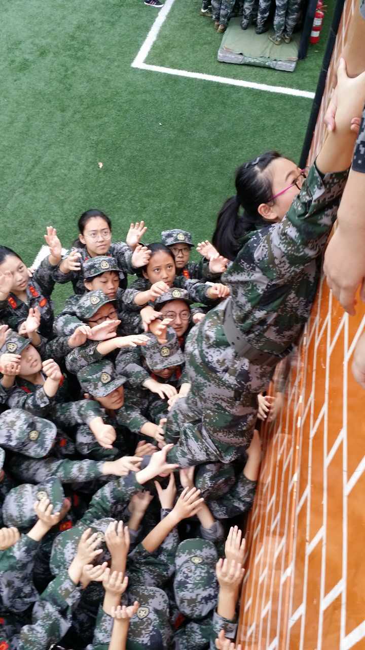 軍訓第四天,拓展訓練。難得逃脫(tuō)了教官的魔爪,大家都有點小慶幸。拓展訓練的廣場鐵門(mén)一(yī)開,同學們如同放羊一般,湧進操場(chǎng),雙腳踏在草坪上的感覺實在是久違。拓展訓練——絕壁營(yíng)救一麵四米高的牆,沒(méi)有任何突起可(kě)以攀爬,靠的(de)是牆下同(tóng)學的托舉和牆頂同學的“腕腕相扣”。我(wǒ)做了一次主人梯,雙(shuāng)手抵在牆上(shàng),將全身力量都集中在肩膀上。當挑戰者的腳踩在了肩膀(bǎng)上,酸痛感瞬間蔓(màn)延全身(shēn)。周圍的同學緊(jǐn)緊圍在挑戰者身邊時時刻刻保護者挑戰者。當我作為挑戰者(zhě)爬上人梯,四(sì)周的同學緊緊地托住(zhù)我的(de)腿,牆頂(dǐng)上的(de)保護者朝我遞來一隻隻手,即便是再高的絕壁也都能感到滿滿(mǎn)的安全(quán)感。在生活中,這種安全感來自(zì)於父(fù)母和老師。他們是91视频网站成長路上的扶梯將91视频网站引領至遠方。內務整理——抹地因為沒有拖把,我(wǒ)們就拿著抹布跪在瓷磚上,把地板當作了自己的床來擦。每當有人從地板上(shàng)走過,把剛剛擦過的地麵上就出現了一個清晰的黑(hēi)腳印,簡直(zhí)讓(ràng)91视频网站痛心疾首(shǒu),但也不能禁止(zhǐ)別人走路,這種感覺大概就是“啞巴吃黃連——有(yǒu)苦說不出”吧!
