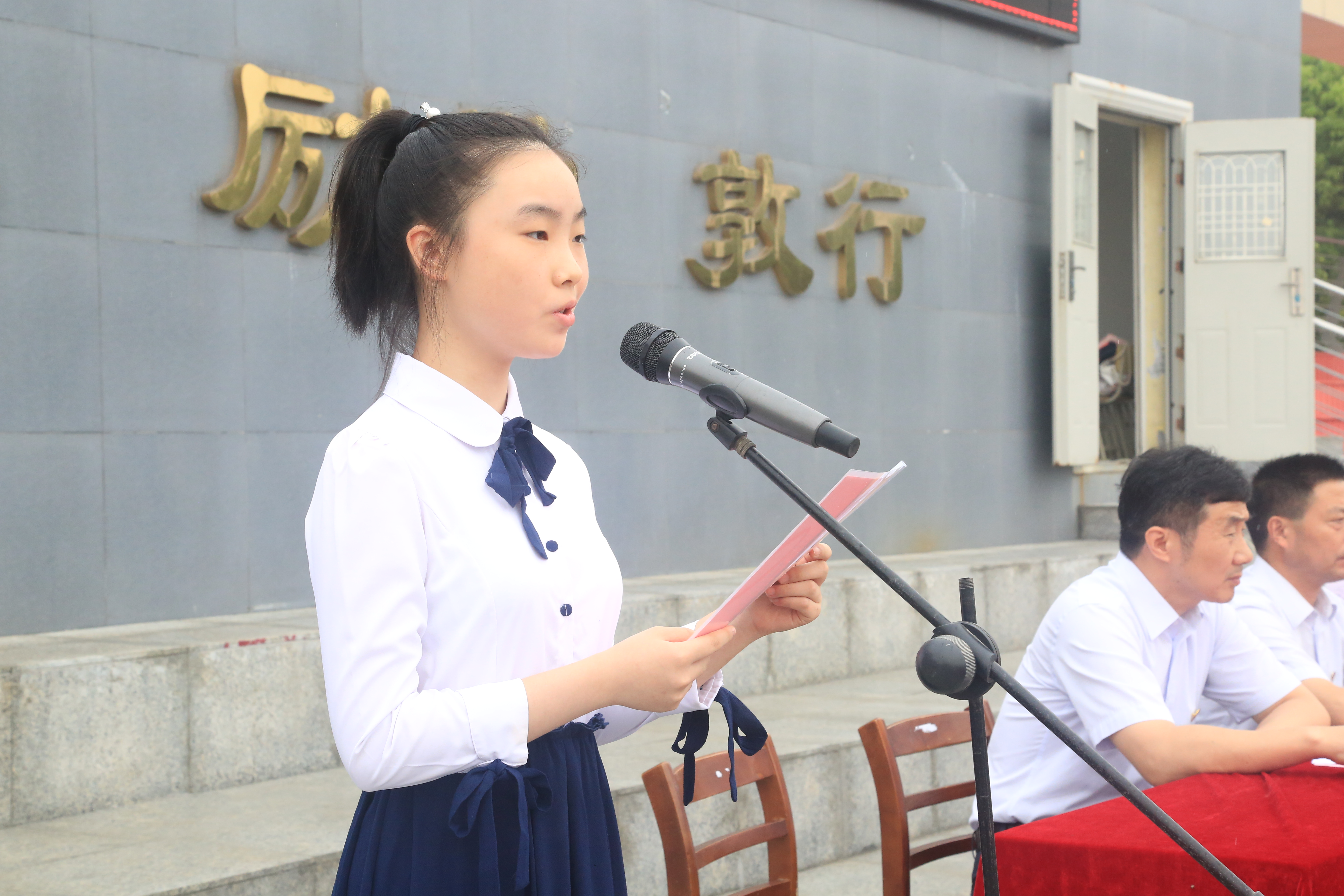 高一(2)班徐李迪同學作為高一新生代表發言。她表示(shì),在未來的三年中,要珍惜韶光,努力拚搏,用(yòng)自己(jǐ)鮮活的青春、躍動的(de)熱情來續寫二中的輝煌!