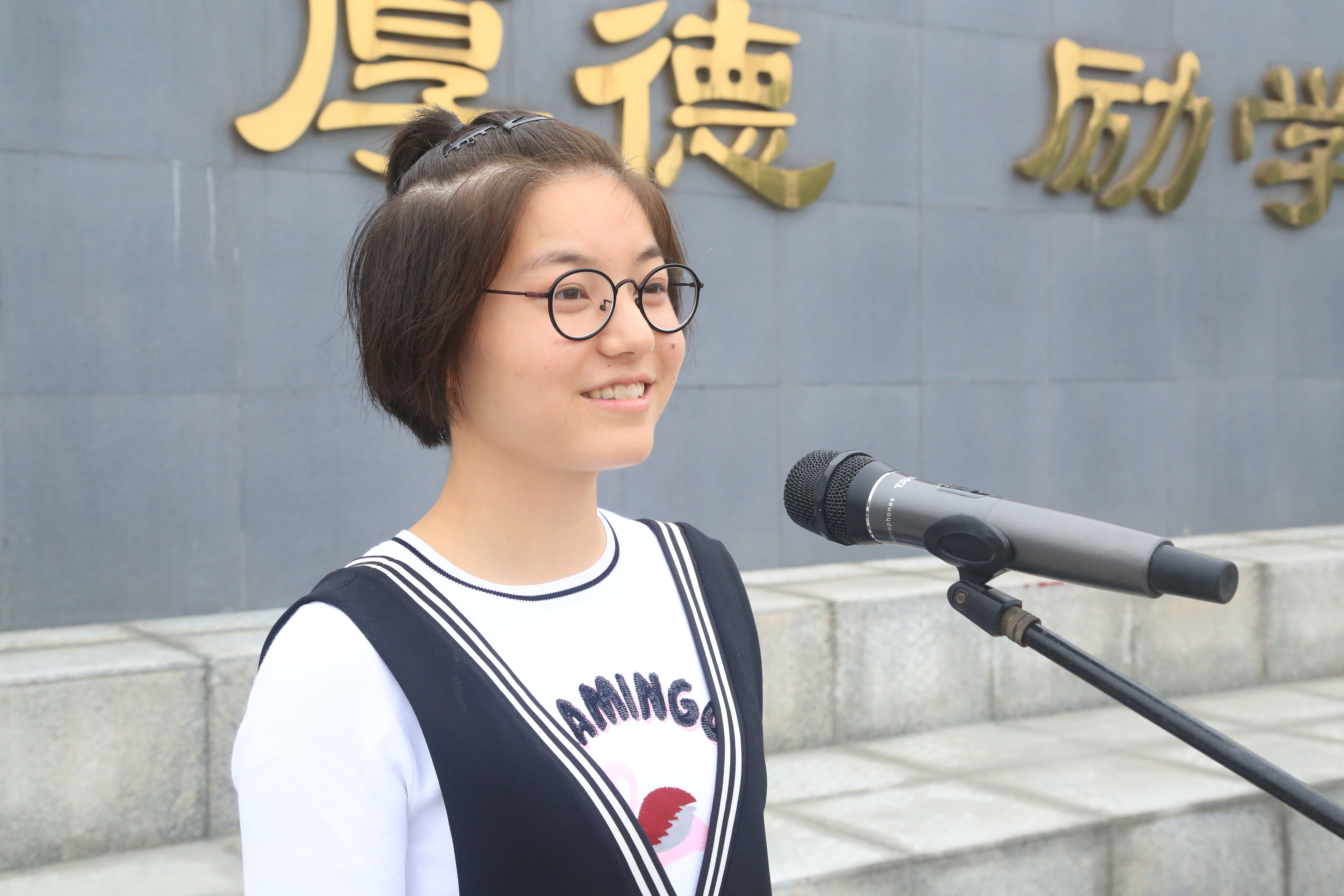 2017屆高三畢業(yè)生代表、現已錄取至複旦(dàn)大學(xué)經濟(jì)係的陳牧風同學代表2017屆全體畢業同(tóng)學發言。她深情地回顧了自己在(zài)二中學習生活的美好歲月,結合(hé)自己三年(nián)的經曆分別對高(gāo)一新生、高二和(hé)高三同學提(tí)出忠告和希望。在祝福母校(xiào)建校六十周(zhōu)年生日之際,她以一位校友的身份號召從“大馬二”飛出的雄鷹,銜著一份感動和榮耀歸來!