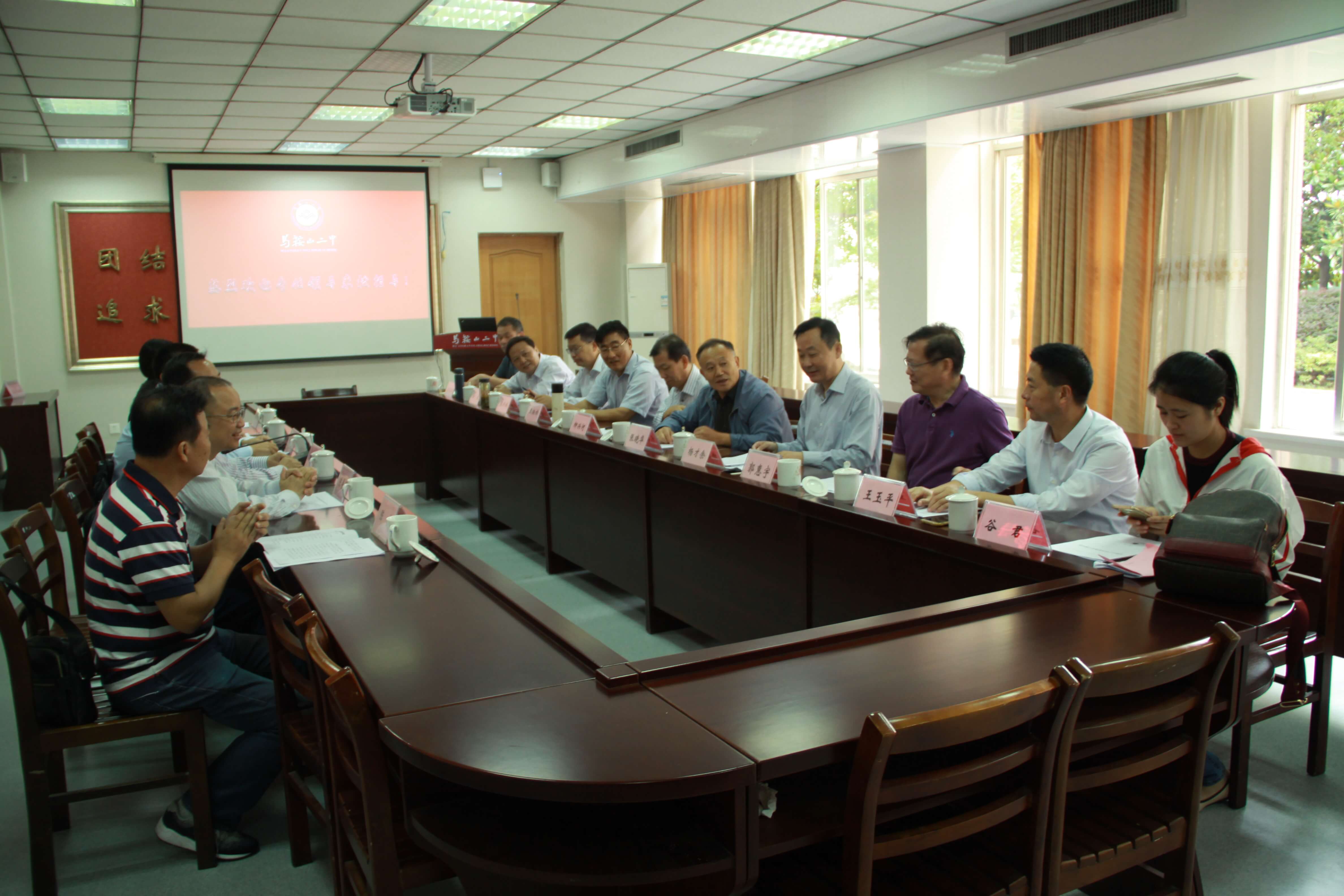 校長郭惠宇、副(fù)校(xiào)長王玉平在行政樓前等候迎接,帶領(lǐng)來賓一行參觀了校園。隨後(hòu)賓主一(yī)行在行政(zhèng)樓一樓會議室召開了(le)調研座談會。