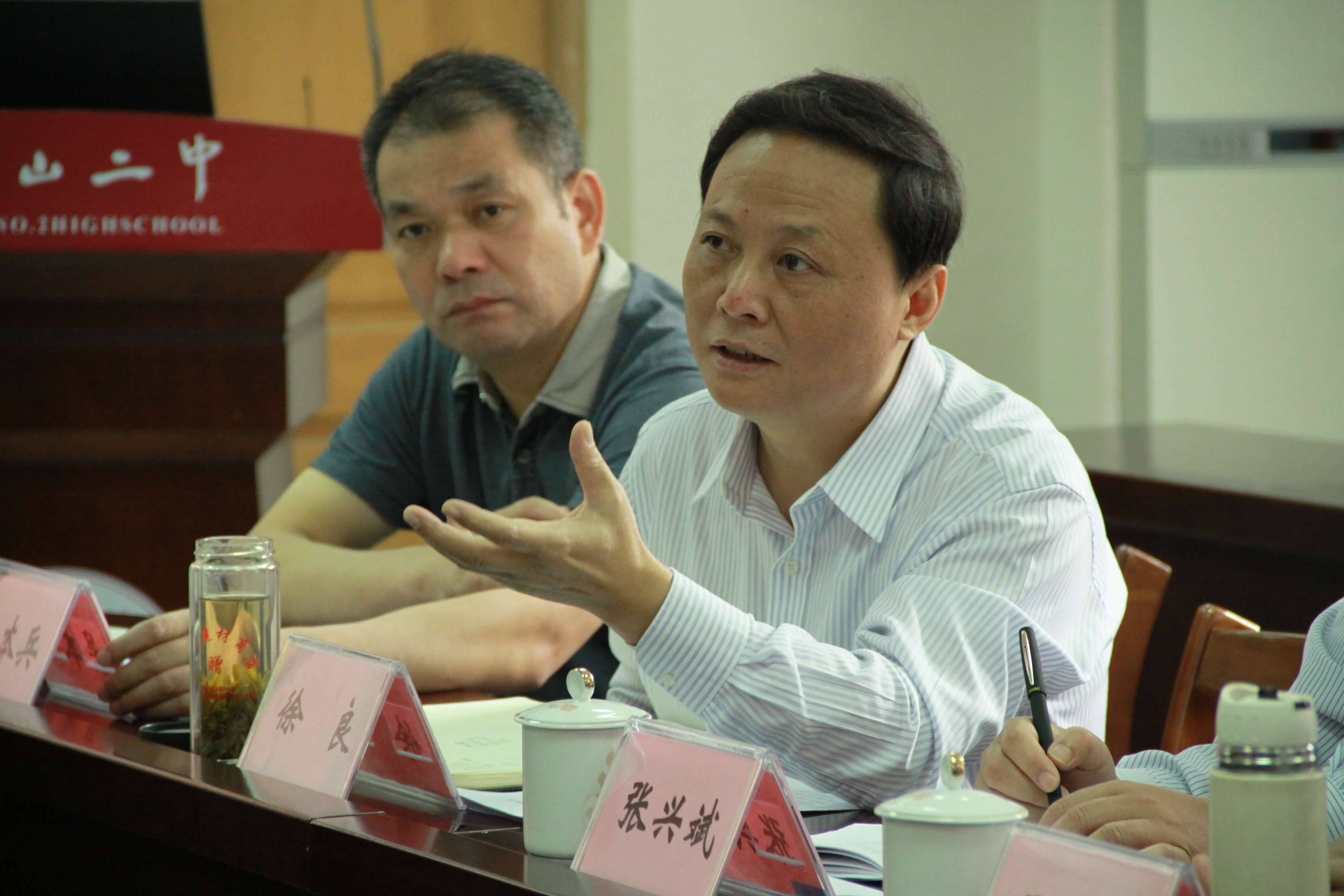 會上,楊才餘局長對曹垂龍(lóng)副主席一行來訪我市進行工作調研表示熱烈歡迎,並向來賓熱情介(jiè)紹了高中教育教(jiāo)學工(gōng)作的概貌。郭惠宇校長向(xiàng)調(diào)研組詳細介紹了我校發展曆程、師資隊伍建設、課程建(jiàn)設、管理製度、教育教學成果等方麵情況,詳(xiáng)細介紹了我校在基(jī)礎教育均衡化(huà)發展和(hé)辦學規範化的背景(jǐng)下,如何保質保量、一如既往地培養全麵發展的優秀學(xué)子、辦人(rén)民滿意教育的具體做法,並與來賓分享了自己對高中教(jiāo)育發展的感(gǎn)悟與建議(yì)。