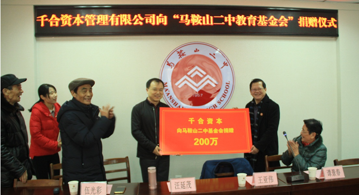 2017129日(rì),是二中校慶年中的一個好日子,天高雲淡,溫暖如春,母校迎來了1989屆高中(zhōng)畢業生、當年安徽省高考理科狀元、如今是“千合資(zī)本管理有限公司”董事長的王亞偉先生。王(wáng)亞偉同學此次回校,為母校教育基金會捐贈(zèng)200萬元。
