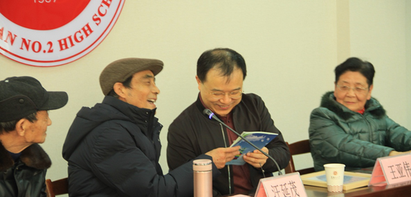 現任校長郭惠宇幽默地說:要(yào)(1)愛(2)永久(jiǔ)(9),意味學子充(chōng)滿愛心,感恩母校!原(yuán)校長(zhǎng)汪延茂趣味地說(shuō):他邀請伍光彩和(hé)潭景春老師,可(kě)謂“春色滿校園——景春;豔(yàn)陽照二中——光彩”。