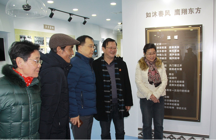 在郭惠宇校長和聶曉霞書記的引導下,王亞偉同學參觀了新建的校史(shǐ)館。 回憶的閘門就此打開,王亞偉校友似乎又回到了風華正茂中學時代,他在往日的群(qún)星苑和雄鷹展翅新址處留(liú)下了(le)合影。