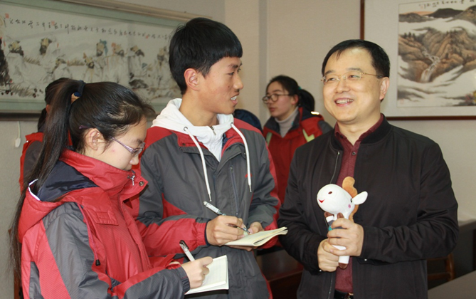 參觀後,二中的小記者(zhě)和部分(fèn)在校(xiào)的學生早已在接待室恭候。王亞偉校友興致勃勃地與小(xiǎo)記者們交流,部分學生排隊請學長簽名留念,王亞偉校友均一一滿足。