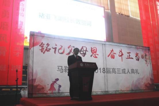 副校長褚亞飛首先致辭,他代表學校向步入成人行列的青年學生致以了熱烈的祝賀,如今(jīn)高考在即,接下來幾個(gè)月的時間,希望每一個(gè)學(xué)子都能全力張開青春的臂(bì)膀,在如火(huǒ)的夏季,打出漂亮的高考勝仗,在金黃的(de)秋季,收獲美好的夢想。