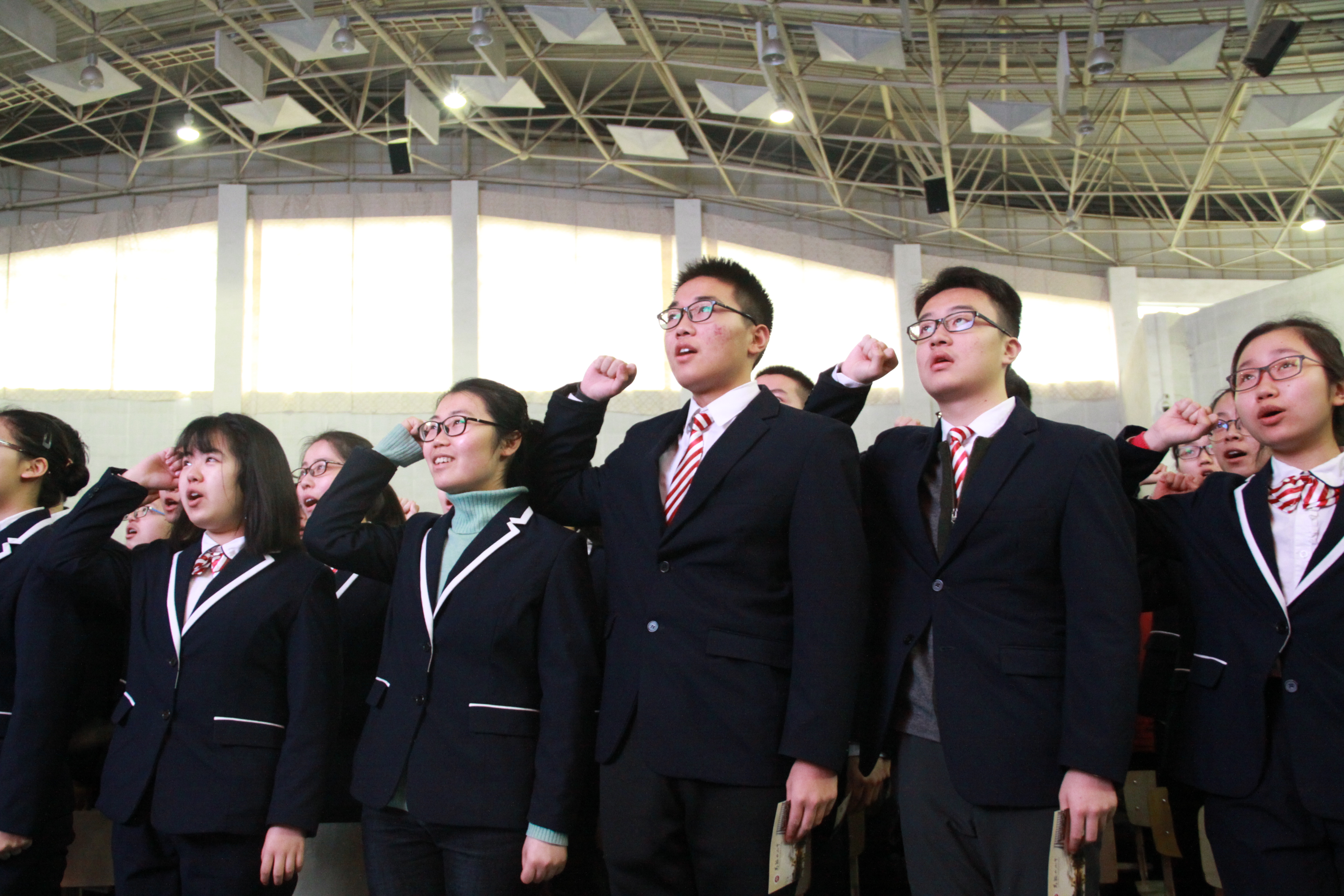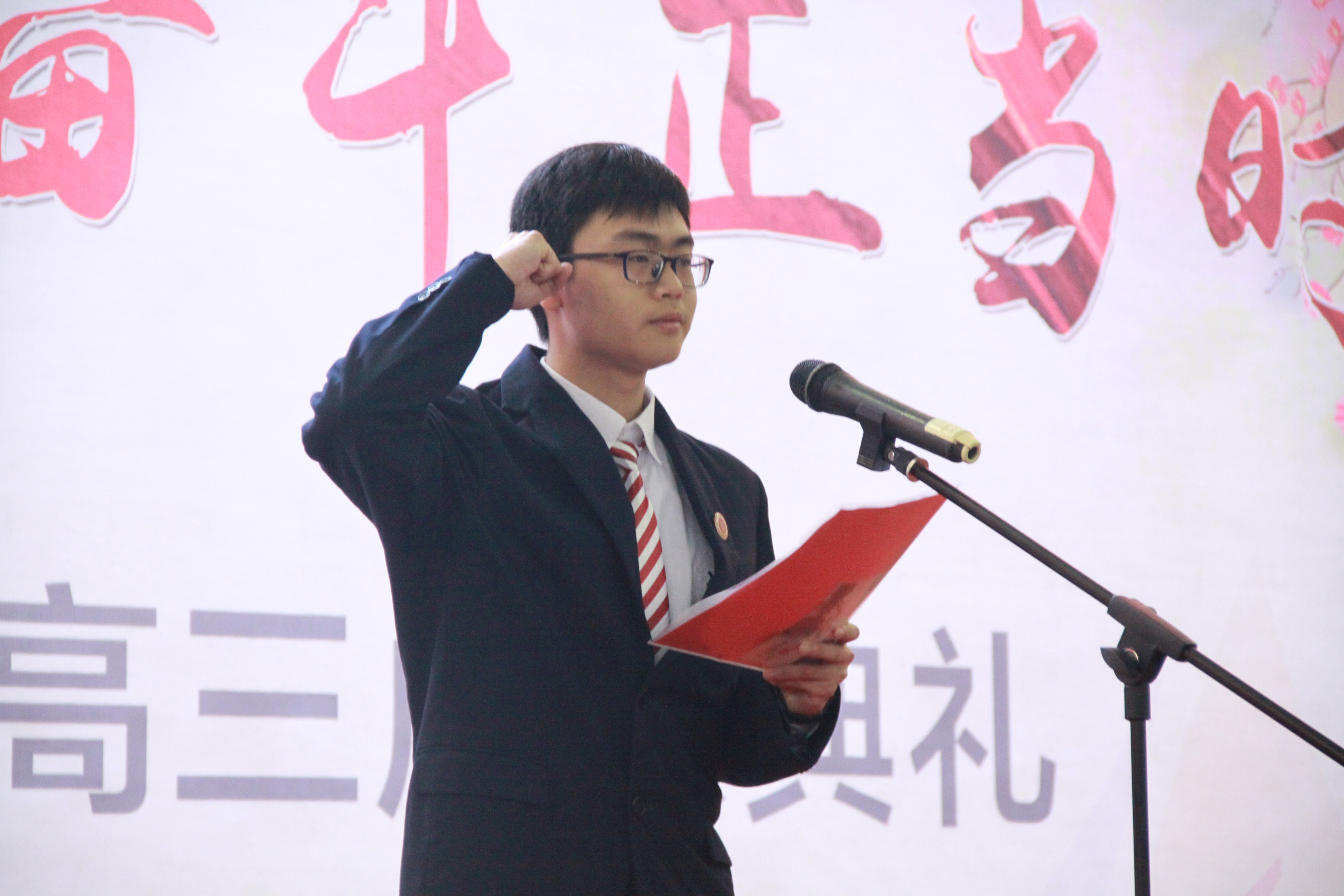 最後,由高三(1)班學生王之昱帶領全體同學進行高三宣誓。一句句鏗鏘(qiāng)有力的誓詞,回響在體育館裏,更紮根(gēn)在同學們心中。從今往後,他們將更加嚴於律己,努力奮鬥。