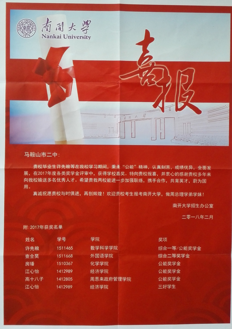 南(nán)開大學喜報