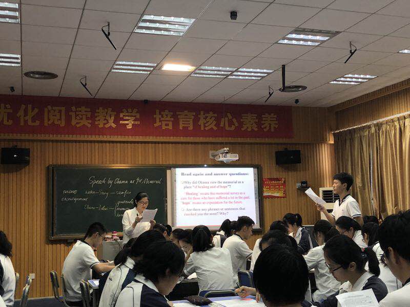 本部高三英語教師計珂老師為大家帶來一堂精彩的閱讀課,她充分利用9月(yuè)11日這個特(tè)殊的日子(zǐ),別(bié)具匠心(xīn)地選擇了美國總統奧巴馬在“911”事件發生後所做的演講為閱讀題材。整節課條理清晰,教學策略(luè)運用(yòng)恰當,充分調動(dòng)了學生(shēng)的閱讀興(xìng)趣。更為重(chóng)要的(de)是,計珂老師能引導學生從(cóng)不同角度(dù)來分析文本,深度挖掘了教材,培養了學生的思維品(pǐn)質,提高了學生的英語思辨能力。