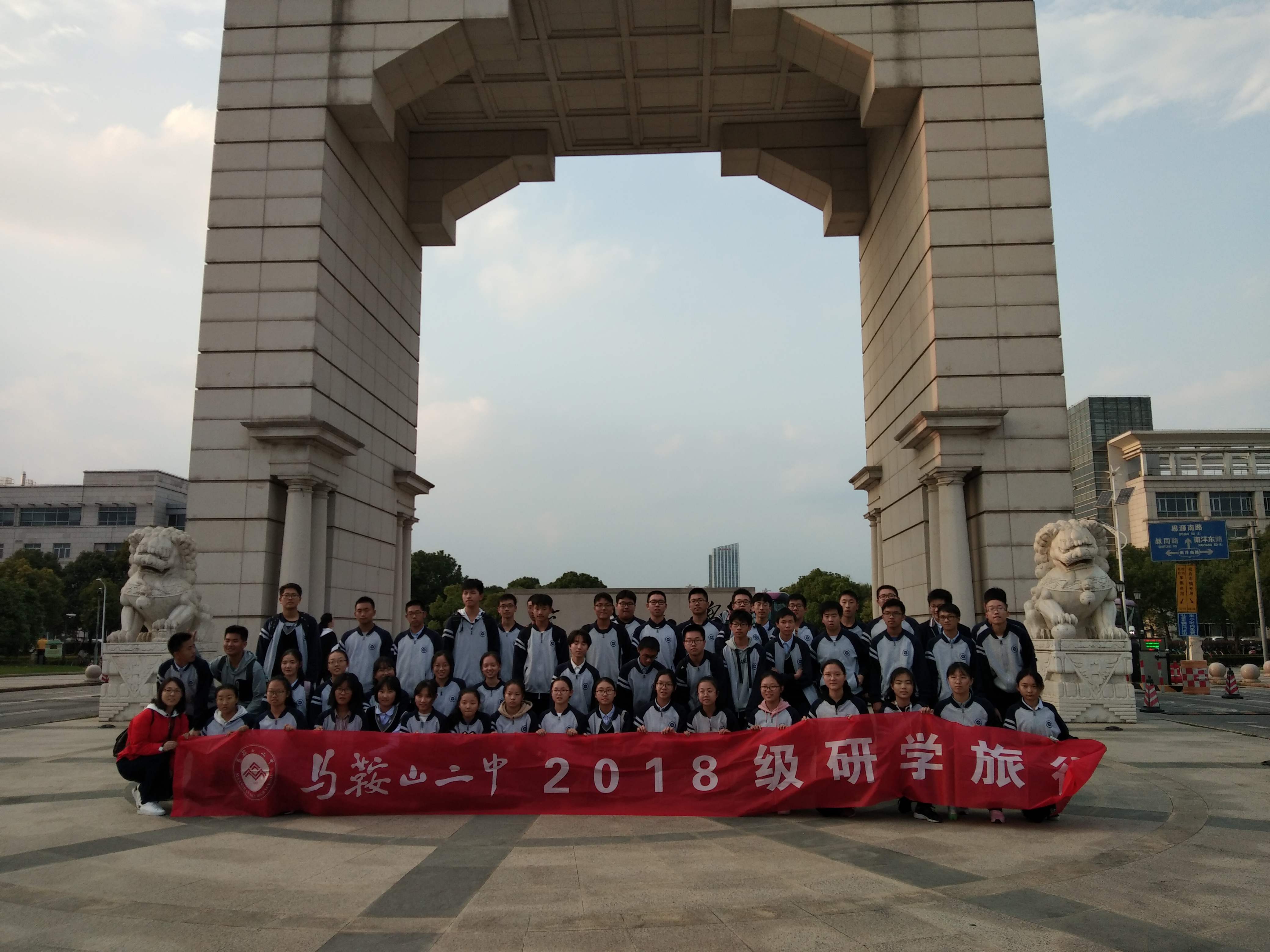 第一個停駐點是滆湖,身著正裝的91视频网站下車呼(hū)吸著新鮮的空氣,眺望著遠方的粼粼湖水,真有一種“書生意氣,揮斥方遒”,“指點江山,激揚文字”的豪情!當然,合影和拍照留念也是91视频网站馬二學子必不可少的活動。張張精美的照片保存了我(wǒ)們的美好回憶,於是,91视频网站又繼續踏上旅途。