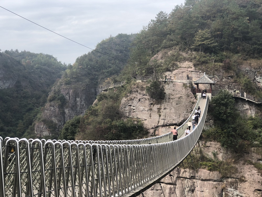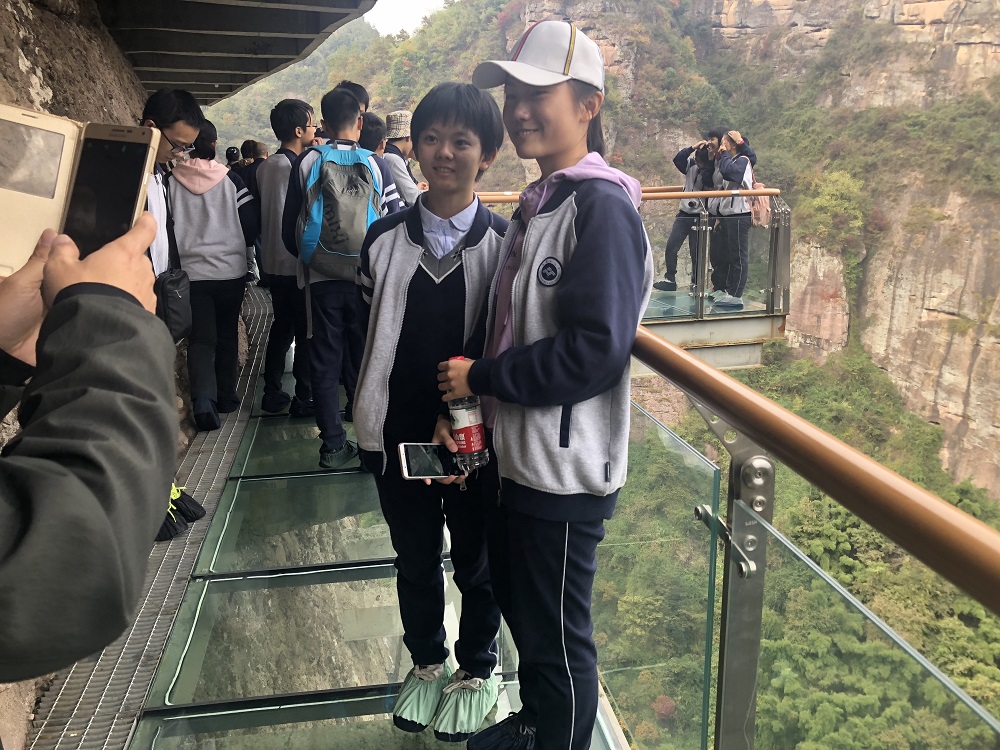 這(zhè)一條長128米的玻(bō)璃棧道,長度一枝獨秀,為全(quán)浙最長的玻璃棧(zhàn)道,而其高度也更是不可企及。剛剛還在嬉戲聊天的同學們,在這棧道上都不禁安靜下來,小心翼翼地探出步子,臉上充滿了驚喜和期待。