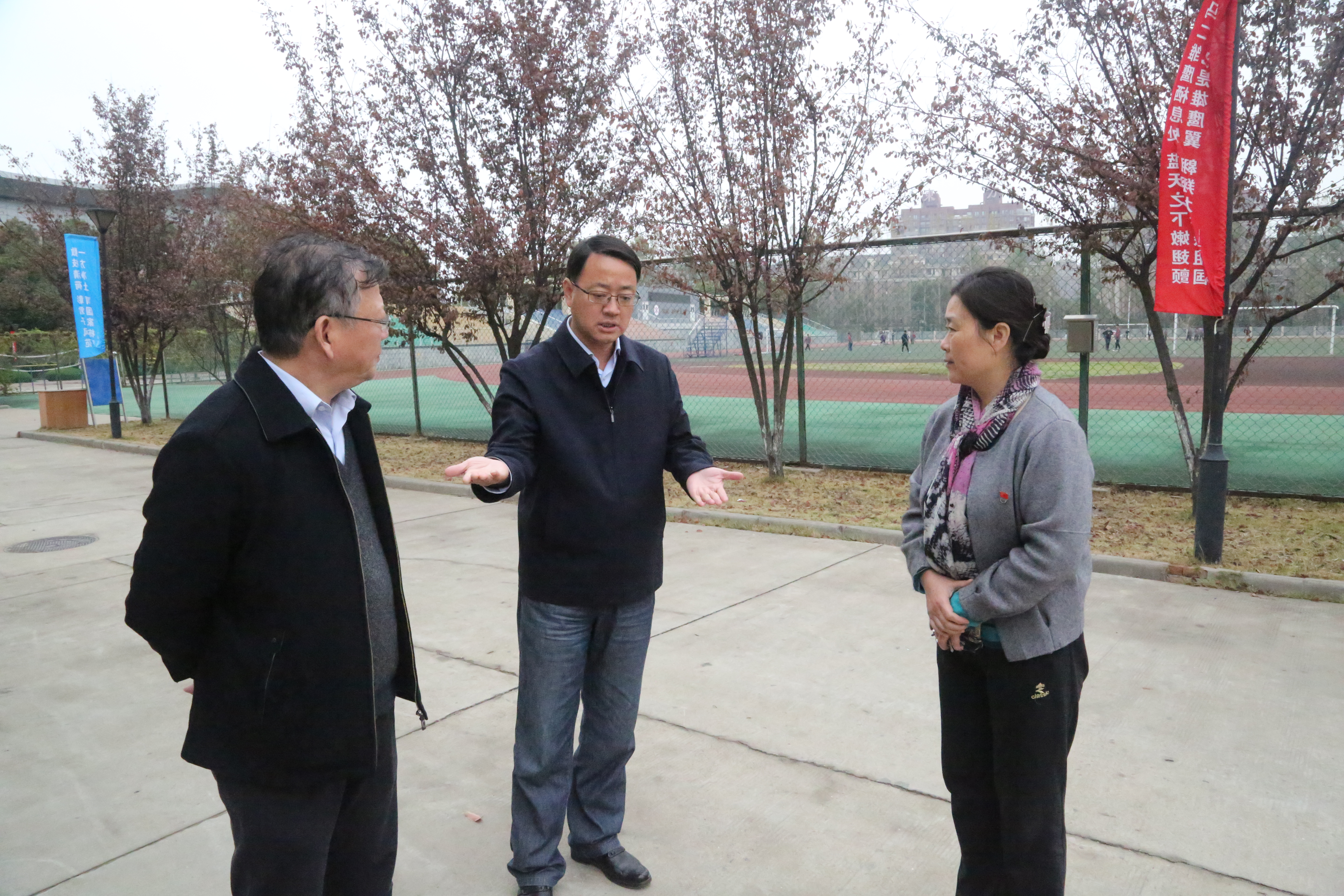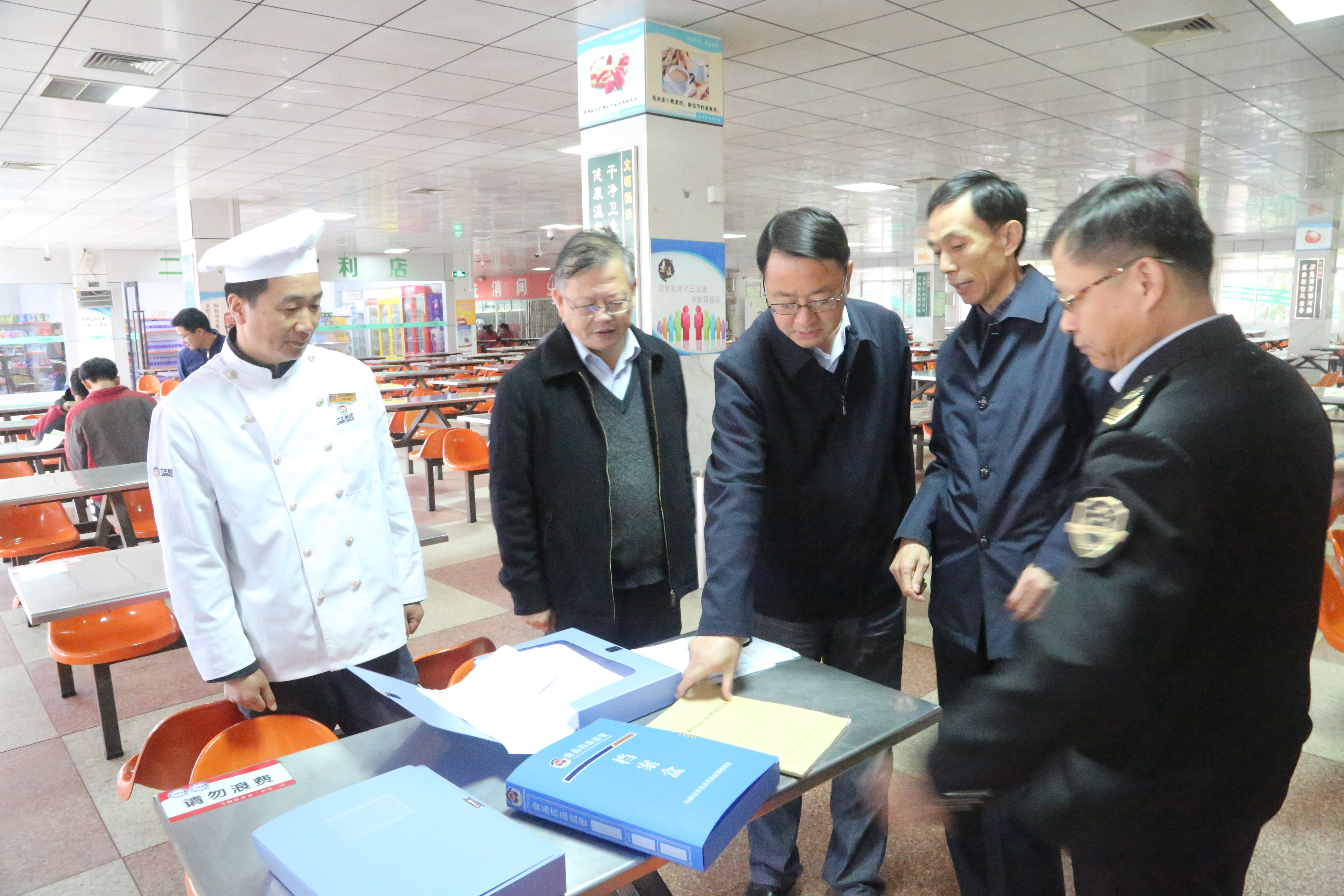 2018年11月15日上午,馬鞍(ān)山市政府副(fù)市長楊善斌來到我(wǒ)校檢查指導(dǎo)食品衛生安全工作。市政府副秘書長劉觀林、市食(shí)品藥品監督局(jú)局(jú)長(zhǎng)何俊、市教育局副局長竇天明、花山區(qū)副區長餘大麗、馬鞍山二中校長郭惠宇、黨委書記聶(niè)曉霞陪同檢查。